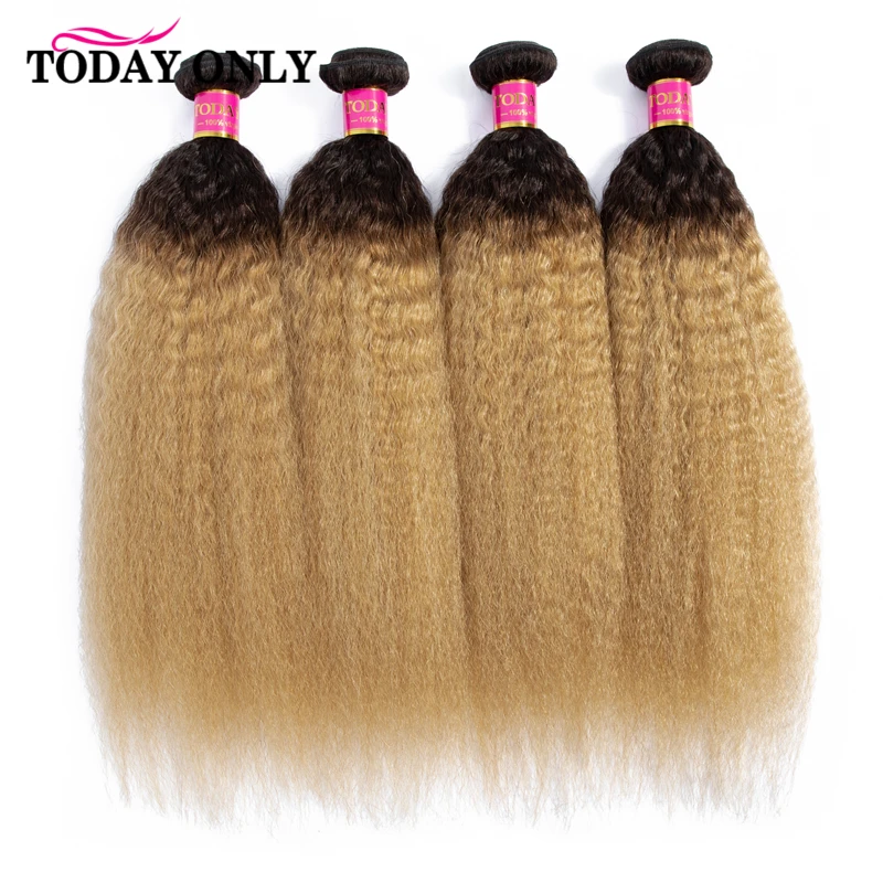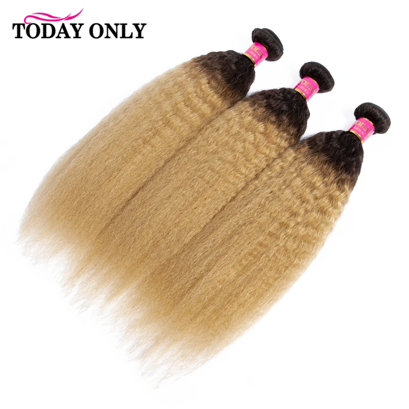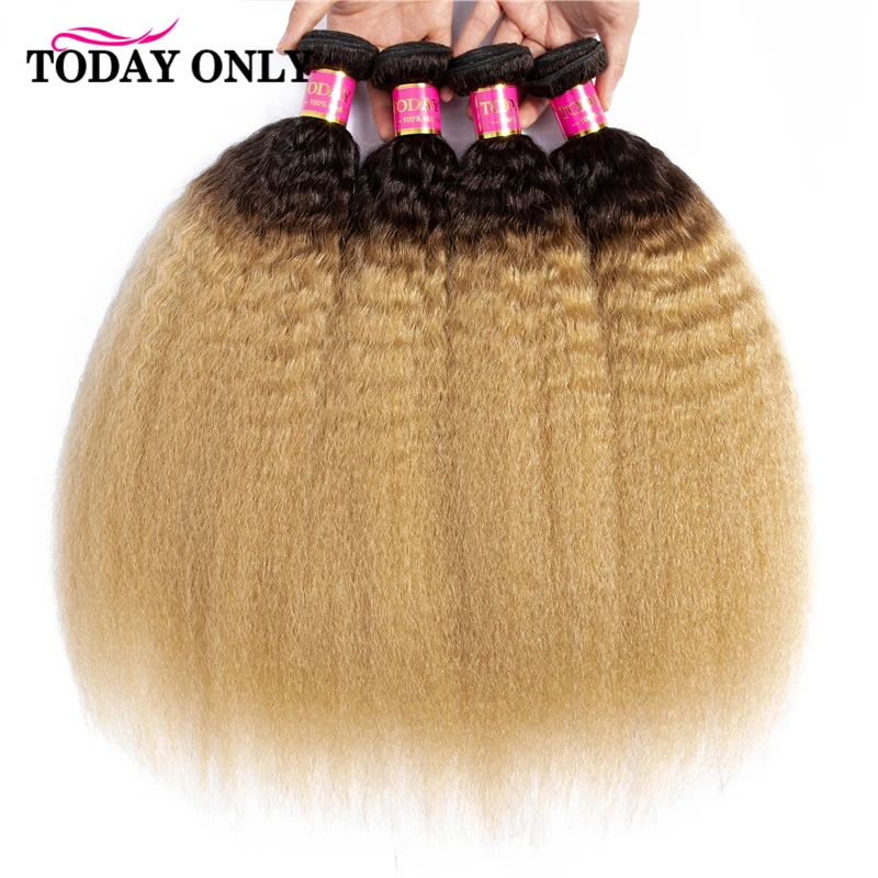 Сегодня только кудрявые прямые волосы 1 3 4 Омбре волосы пряди Remy человеческие волосы для наращивания блонд бразильские волосы плетение пучок предложения 1B27