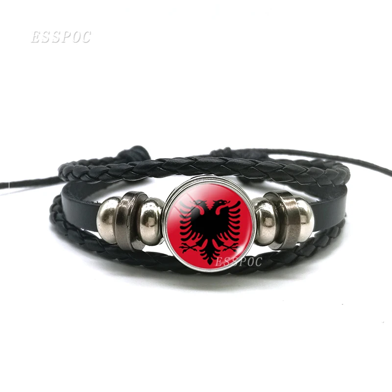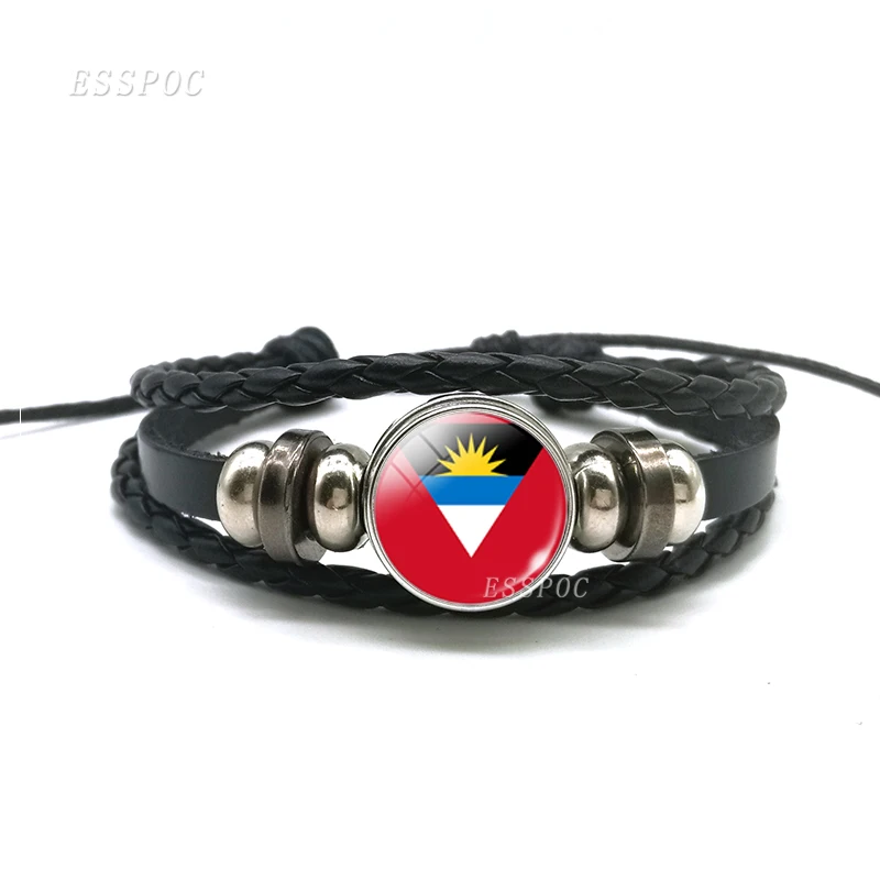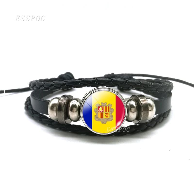 Многослойный черный плетеный браслет с кабоoch, флагом, стеклом, флагом, флагом, армией, Нигерией, флагом Андорры, кожаным браслетом для путешествий