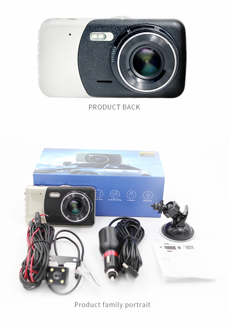 Особенности: Высокое разрешение Full HD 1080P(1920*1080) HD ночное видение Бесшовная функция циклической записи Функция парковочного монитора Функция быстрой блокировки или разблокировки видеофайлов Встроенный датчик гравитации Обнаружение движения 1 AV вход для задней камеры Характеристики: 1. ЖК-дисплей Размер экрана: 4 дюйма на тонкопленочных транзисторах на тонкоплёночных транзисторах 2. Пиксель: 12 мегапикселей 3. Объектив: 170 ° широкоугольный объектив высокой четкости 4. Разрешение видео: 1080FHD/1080P/720P/640P/480P 5. Формат видео: M-JPEG 6. Циклическая запись: бесшовное видео, отсутствие утечки 7. Память: TF 4G max до 32G (не входит в комплект TF карта) 8.USB: usb-диск, камера ПК 9. Вход постоянного тока: 5 В постоянного тока, 1 А 10. Частота: 50 Гц/60 Гц 11. Батарея: встроенный литий-полимерный аккумулятор 12. Фотографический режим: 500 пикселей 13. Микрофон/динамик: Поддержка 14. Язык: английский/упрощенный китайский/традиционный китайский/французский/немецкий/японский/Корейский/русский/испанский/португальский/голландский/итальянский/Арабский 15. Формат изображения: JPEG 16. Размеры: около 11*6,3 см/4,33 * 2.48in Список: 1 * Автомобильный видеорегистратор 1 * Крепление на присоске 1 * Автомобильное зарядное устройство 1 * Задняя камера 1 * Руководство пользователя
