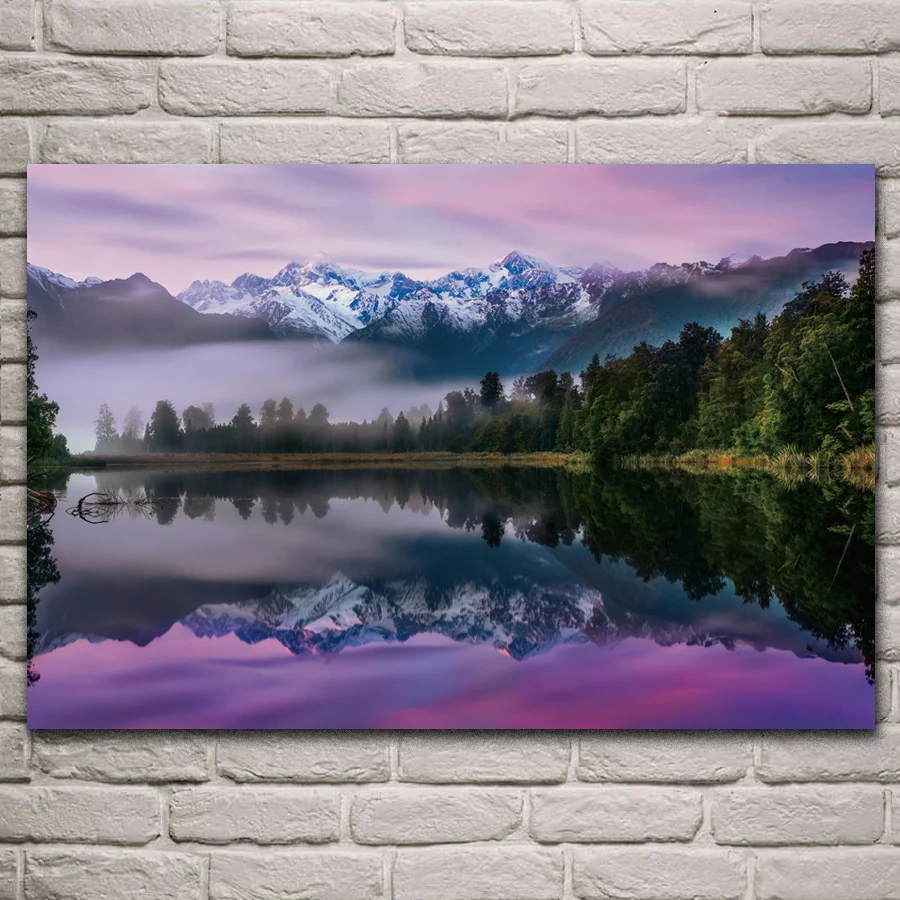 Природная фиолетовая вода, горы, туман, природный ландшафт, ткань, фотография, домашнее искусство, украшение для гостиной KJ847