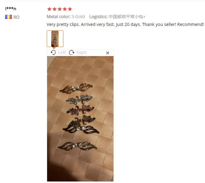 Доставка быстрая. Но заказывала 2 одинаковых зажима , а выслали разные. Нужно было на одну вещь, теперь не подойдут. И ооочень тугие! очень трудно открывать.