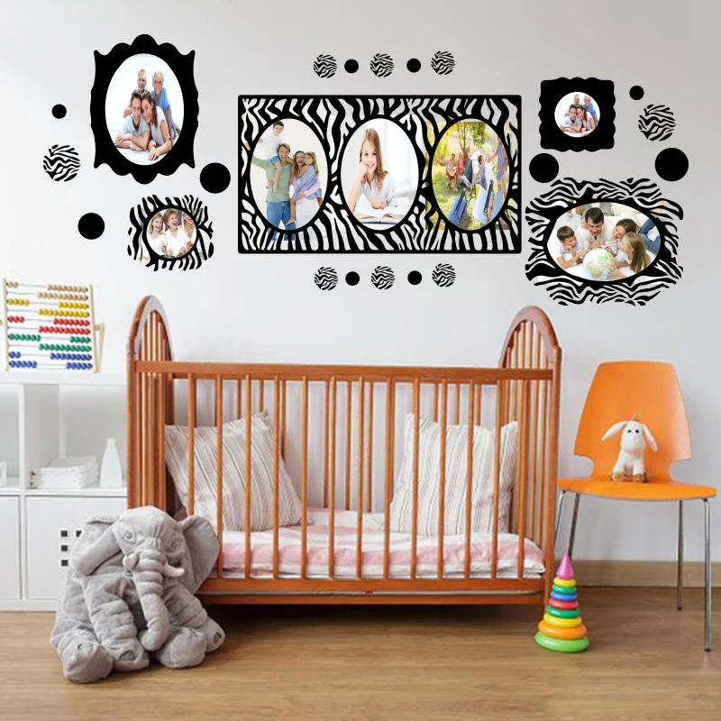 Большие фоторамки с принтом зебры, настенные Стикеры для спальни, гостиной, фоторамки в горошек, настенные наклейки для детской комнаты, виниловый Декор