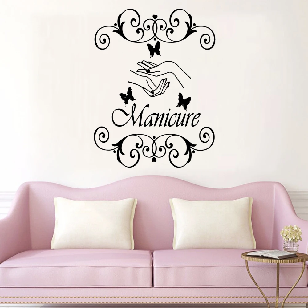 Красота руки и бабочка цветок салон красоты маникюр водонепроницаемый винил стикер стены Декор для коммерческого магазина украшения росписи