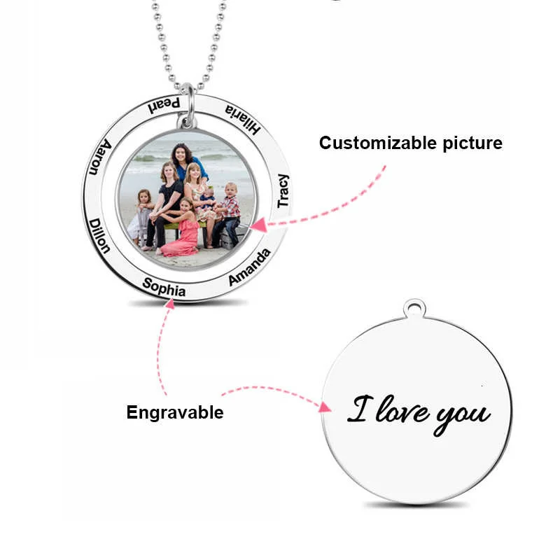 XiaoJing при индивидуальном заказе Цвет фото ожерелье с гравировкой 925 Стерлинговое Серебро Круглый Мемориальный ожерелья для мамочек подарки 2019