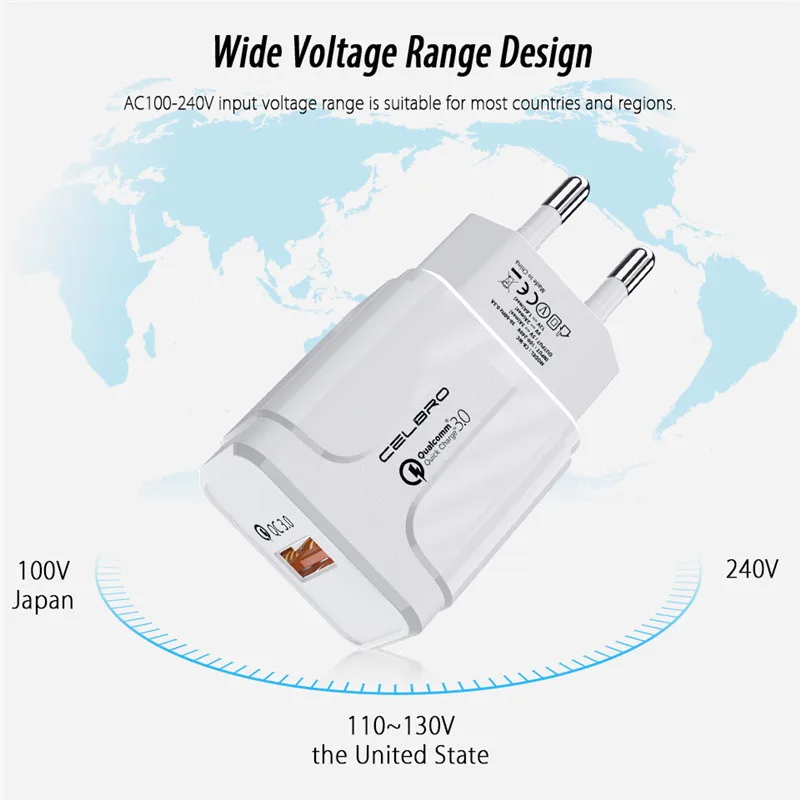Уведомление 1.Это нормально, если зарядное устройство нагревается при зарядке, пожалуйста, не беспокойтесь об этом :) 2. Пожалуйста, обратите внимание, что быстрая зарядка работает для телефонов с поддержкой функции QC3.0/2,0 или Huawei FCP; Для других телефонов она заряжается с нормальной скоростью.