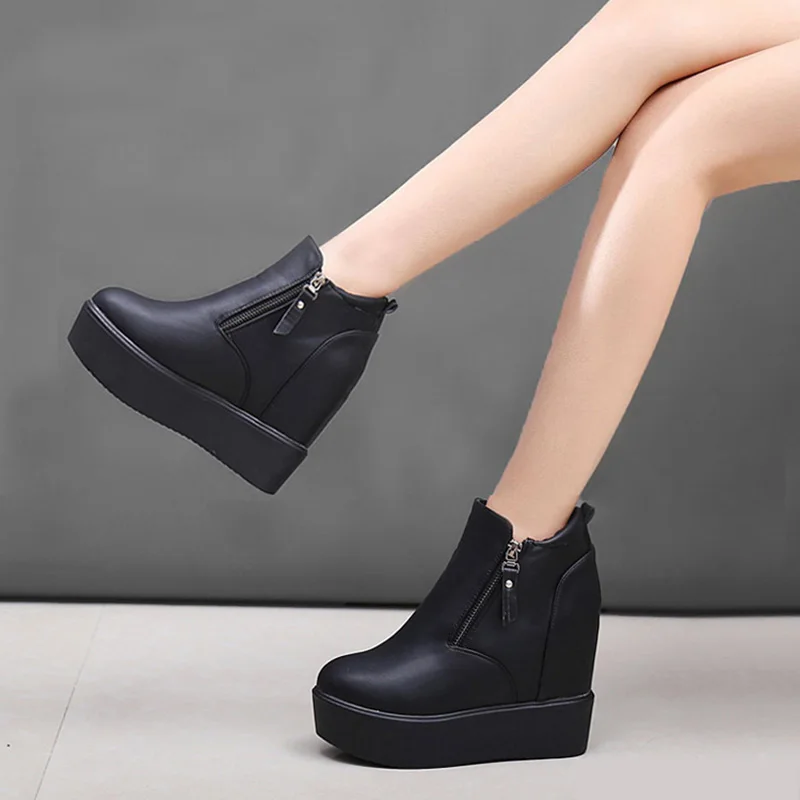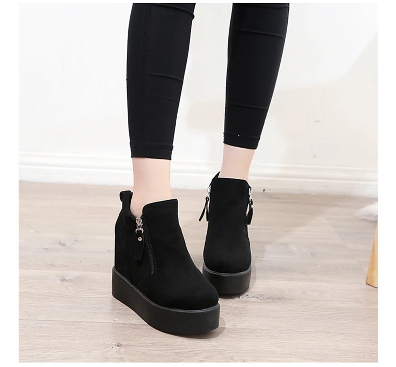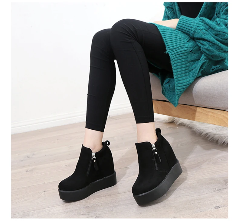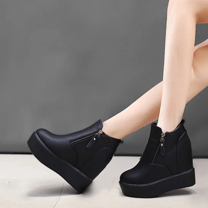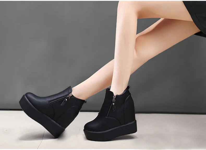 Женские ботильоны 2019 г., зимние кожаные короткие теплые плюшевые ботинки для женщин, обувь на платформе женские ботильоны со скрытым каблуком