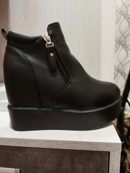 Очень понравились ботинки. Визуально смотрятся красиво. Легкие. Тёплые, с иск.мехом внутри. На свой 37-37,5 заказала 38 размер. Размер подошёл. Есть немного запас, но с тёплыми носками, думаю, уже не влезет нога, но мне этот момент неважен. Единственное, что скользит подошва по снегу, но я в них передвигаюсь мало, т.к., в основном, за рулём. Продавец в подарок прислал копроновые носочки, наверно, за то, что долго отправлял товар)))) В любом случае рекомендую))