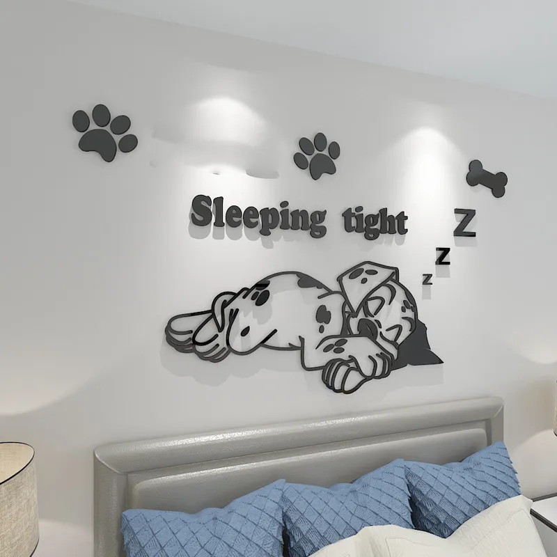Новые Мультяшные акриловые наклейки на стену с изображением милой далматинской собаки, 3D самодельные декоративные наклейки на стену для детской комнаты, детской спальни, прикроватной тумбы