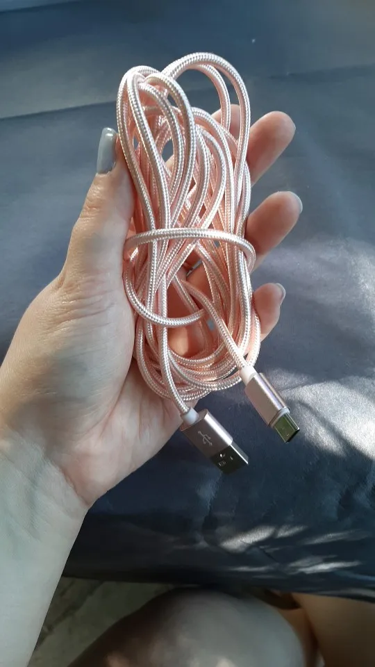 Купила в розовой оплетке. Красивый шнур, поблескивает. Samsung M31 сразу и не понял к чему его подключили. Потом подумал и сказал, что при заряде 43 % до полной зарядки необходимо 5 с лишним часов, хотя воткнула в родную вилку. . Т.е. быструю зарядку не поддерживает. Значит будет дежурить в авто или на работе. Дошёл до Архангельской области за месяц