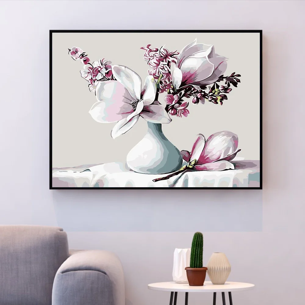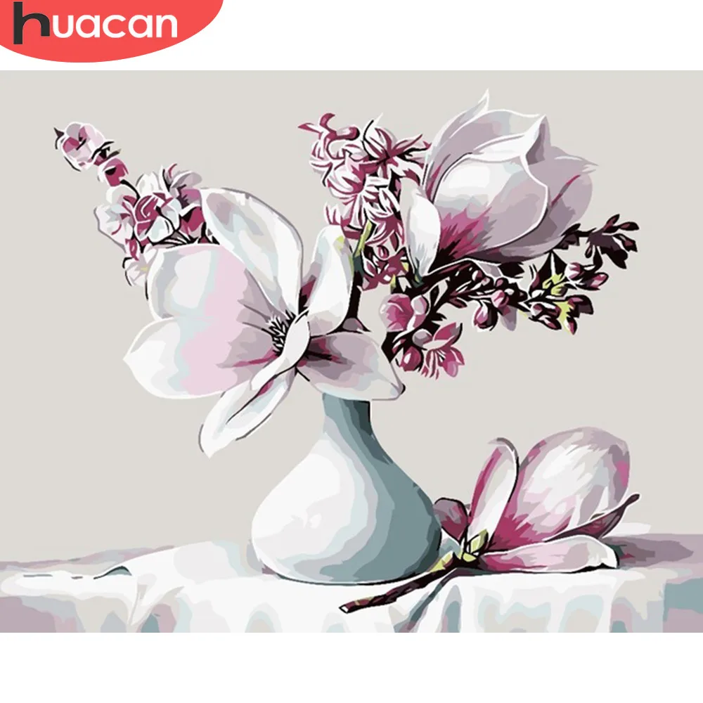 HUACAN DIY картина маслом по номерам цветы в вазе расписанные вручн...