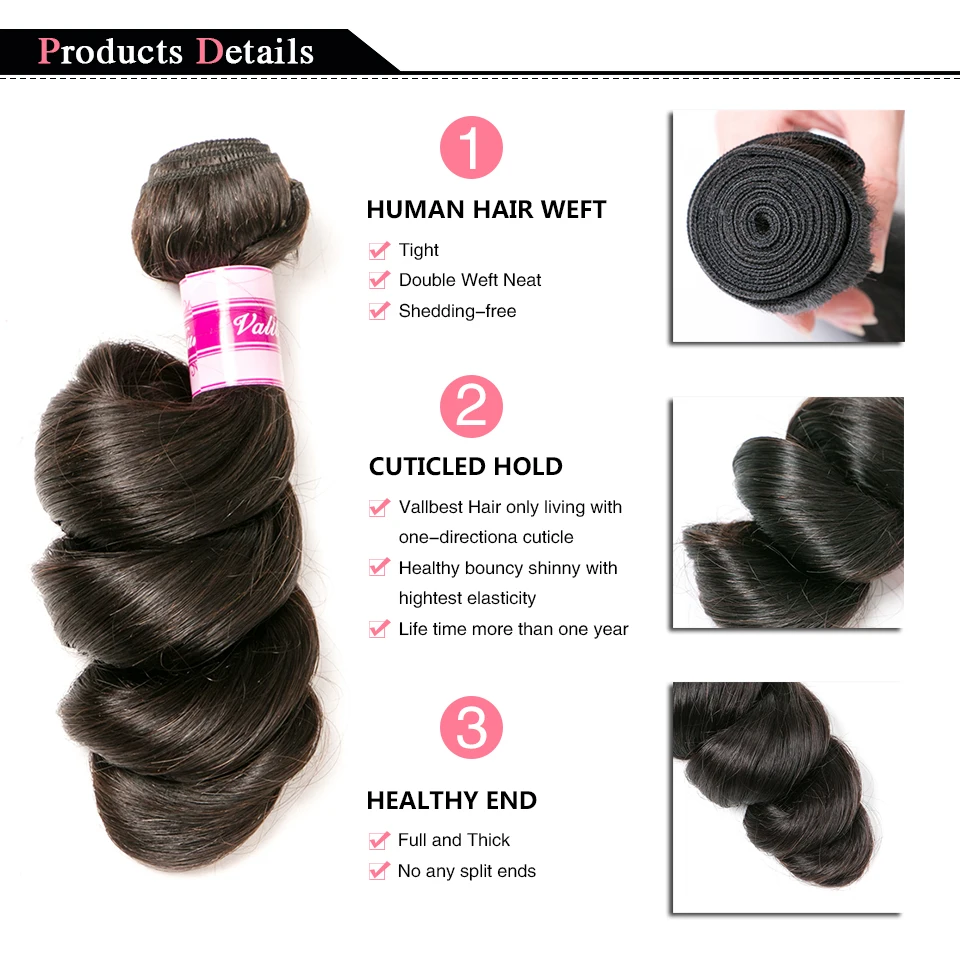 Vallbest перуанские волосы от уха до уха, кружевные фронтальные с пряди Remy человеческие волосы для наращивания, свободные волнистые пряди с фронтальной струей черного цвета