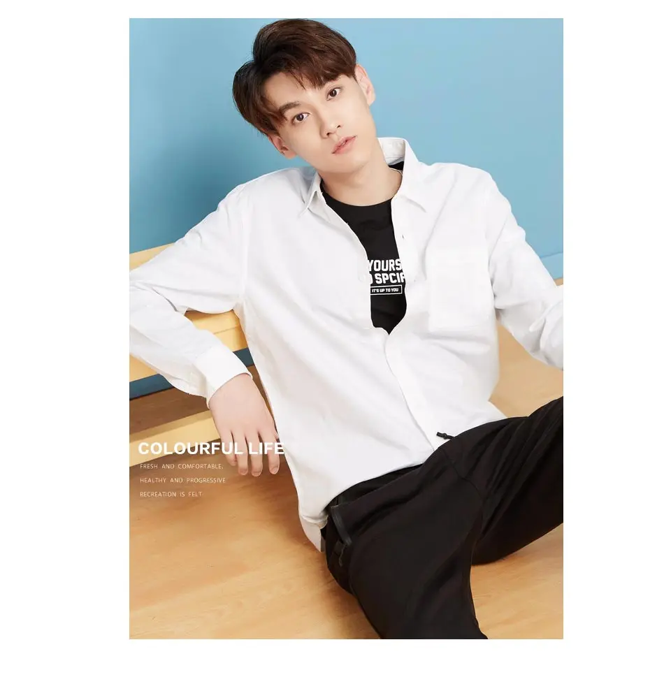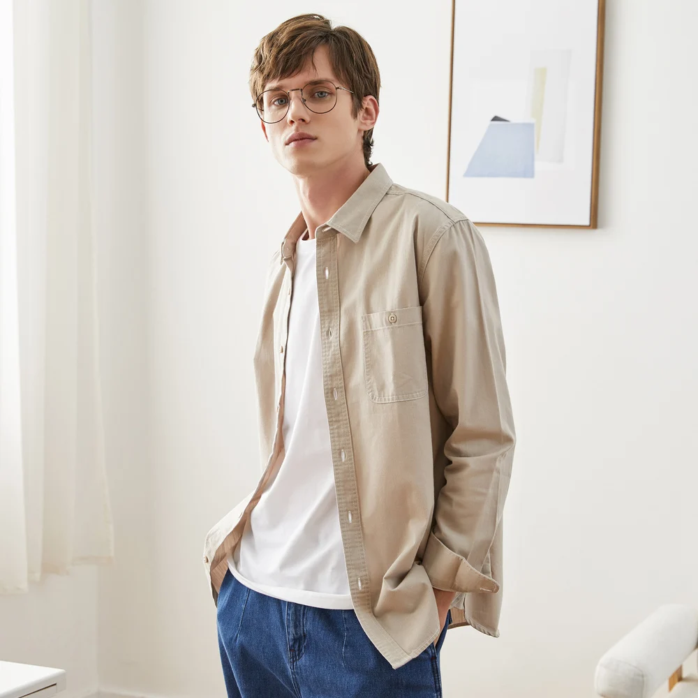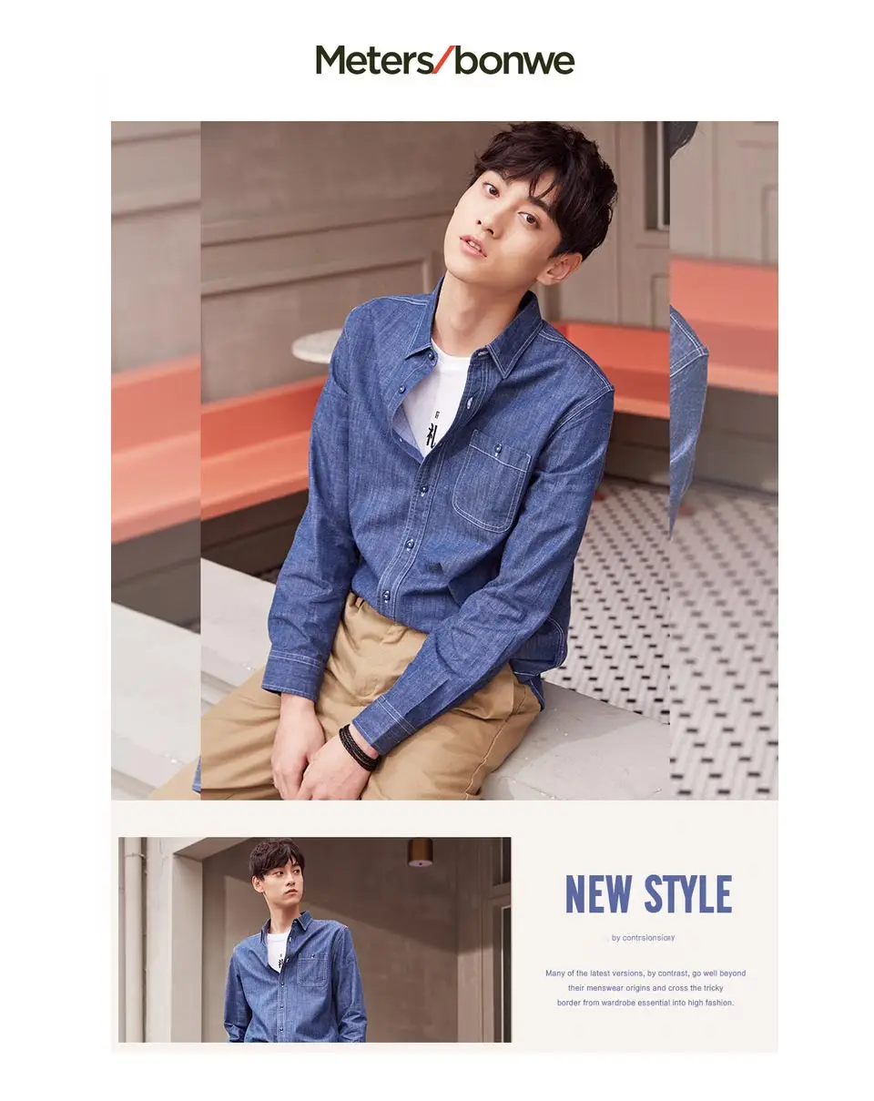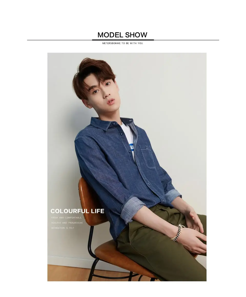 Metersbonwe Брендовые мужские Новые повседневные рубашки весна осень мужские тонкие рубашки с длинным рукавом обычные хлопковые мужские топы для подростков