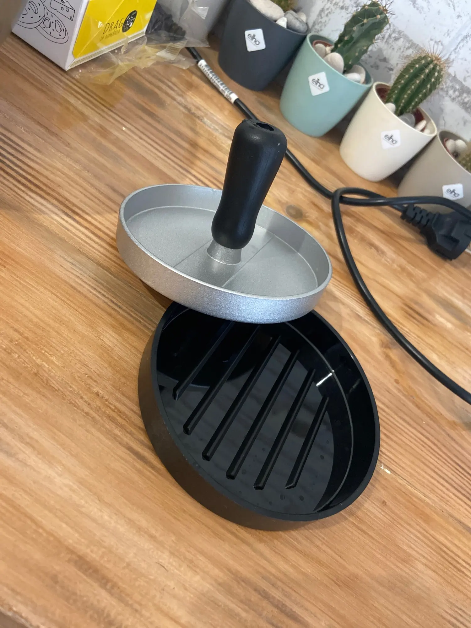 жаль что нижняя часть пластиковая. при жарке мясо сжимается до идеального размера булок с магазина.
