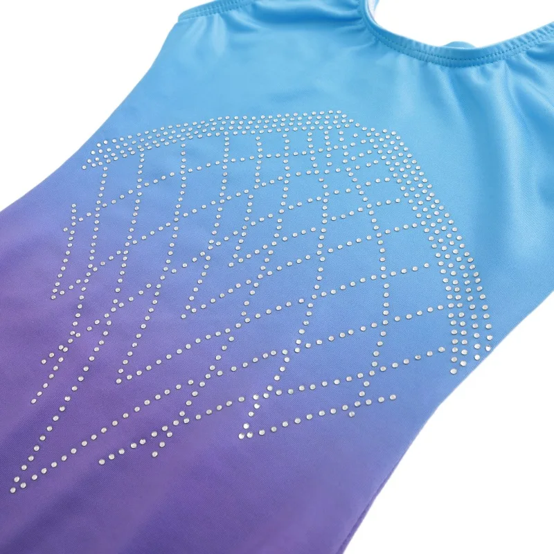 Балетный гимнастический костюм без рукавов со стразами, танцевальный купальник градиентного цвета
