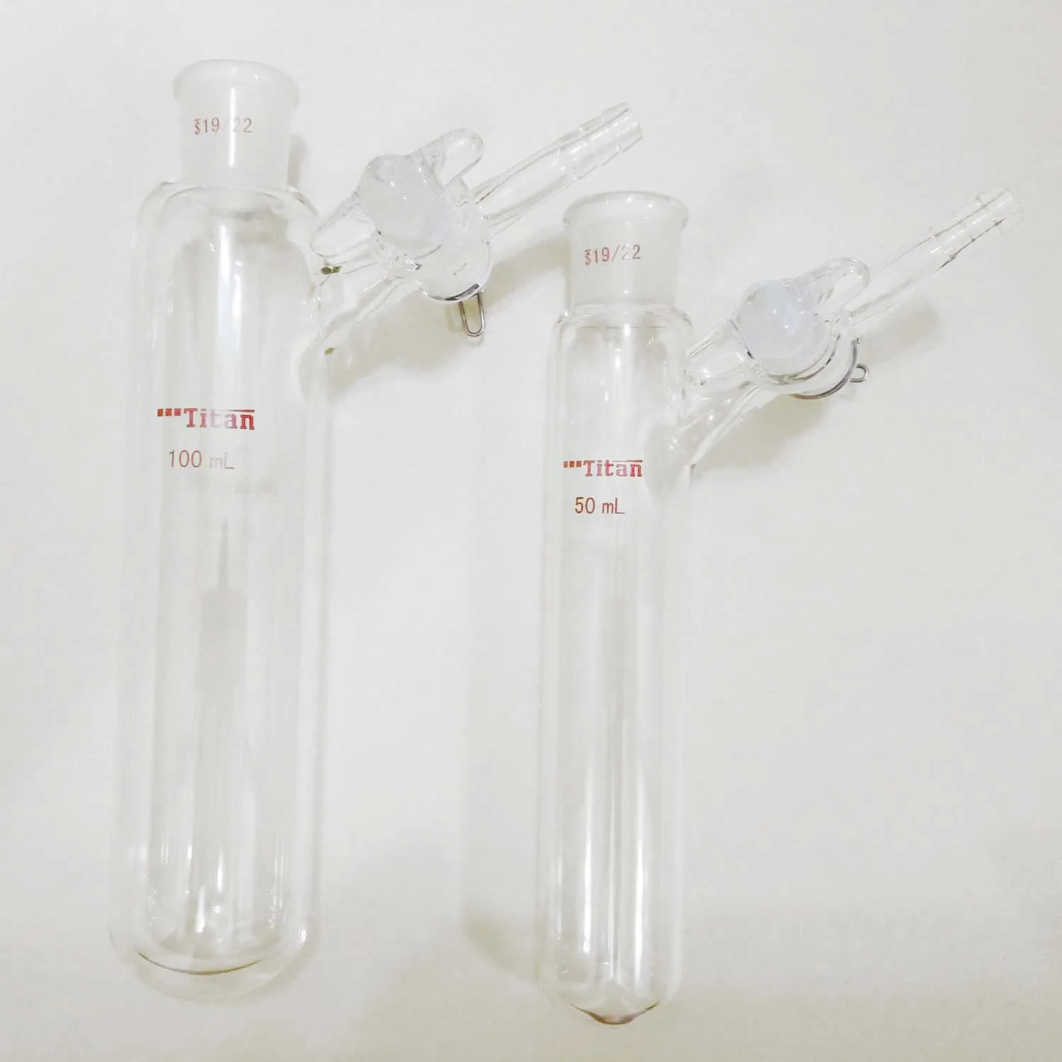 Двухсторонние реакционные трубки со стеклянным стопкоком, толстая стенка, лабораторная стеклянная посуда, шлифовальный рот 14/20 19/22 10-100 мл, принадлежности для экспериментов