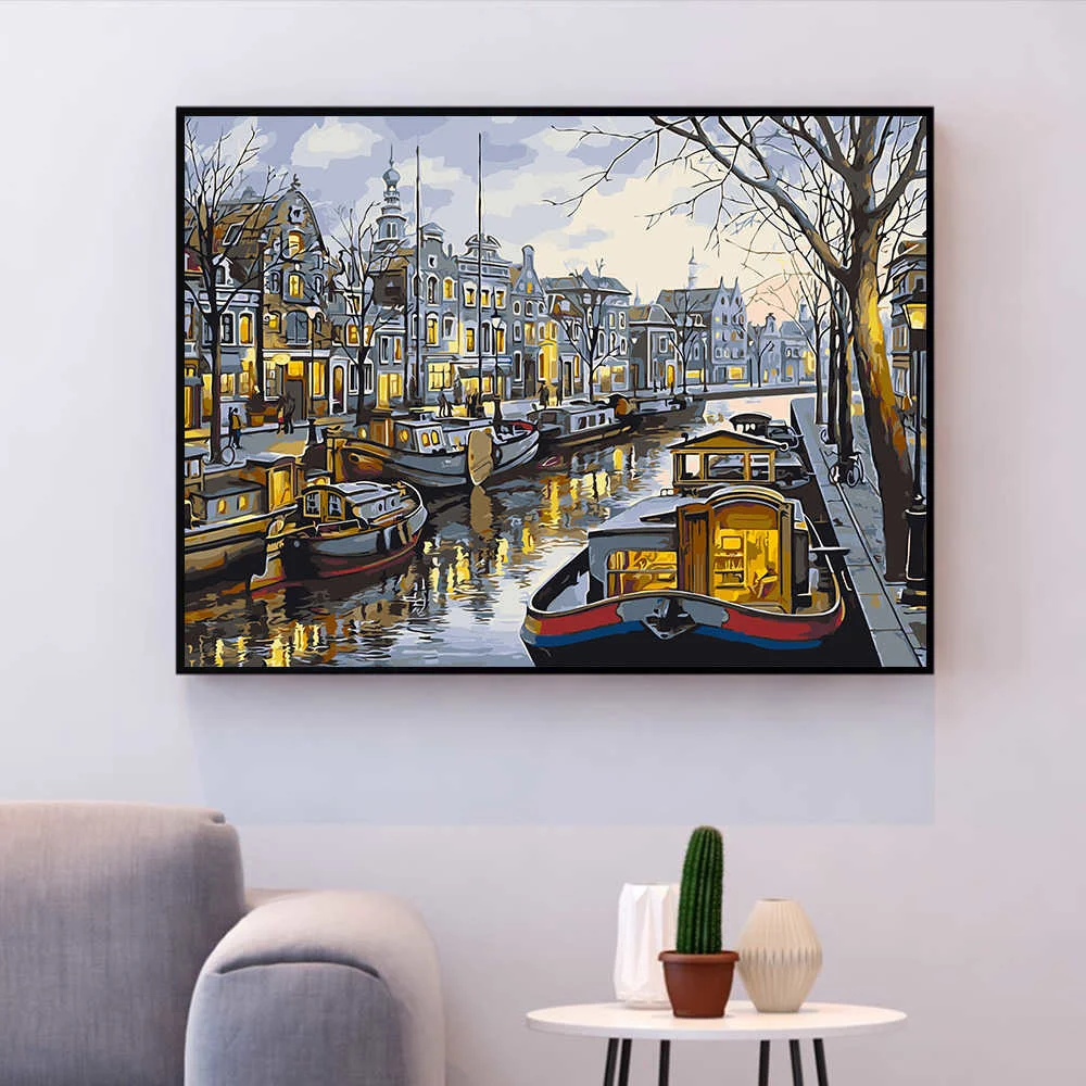 HUACAN DIY картинки по номеру город пейзажные наборы домашний декор...