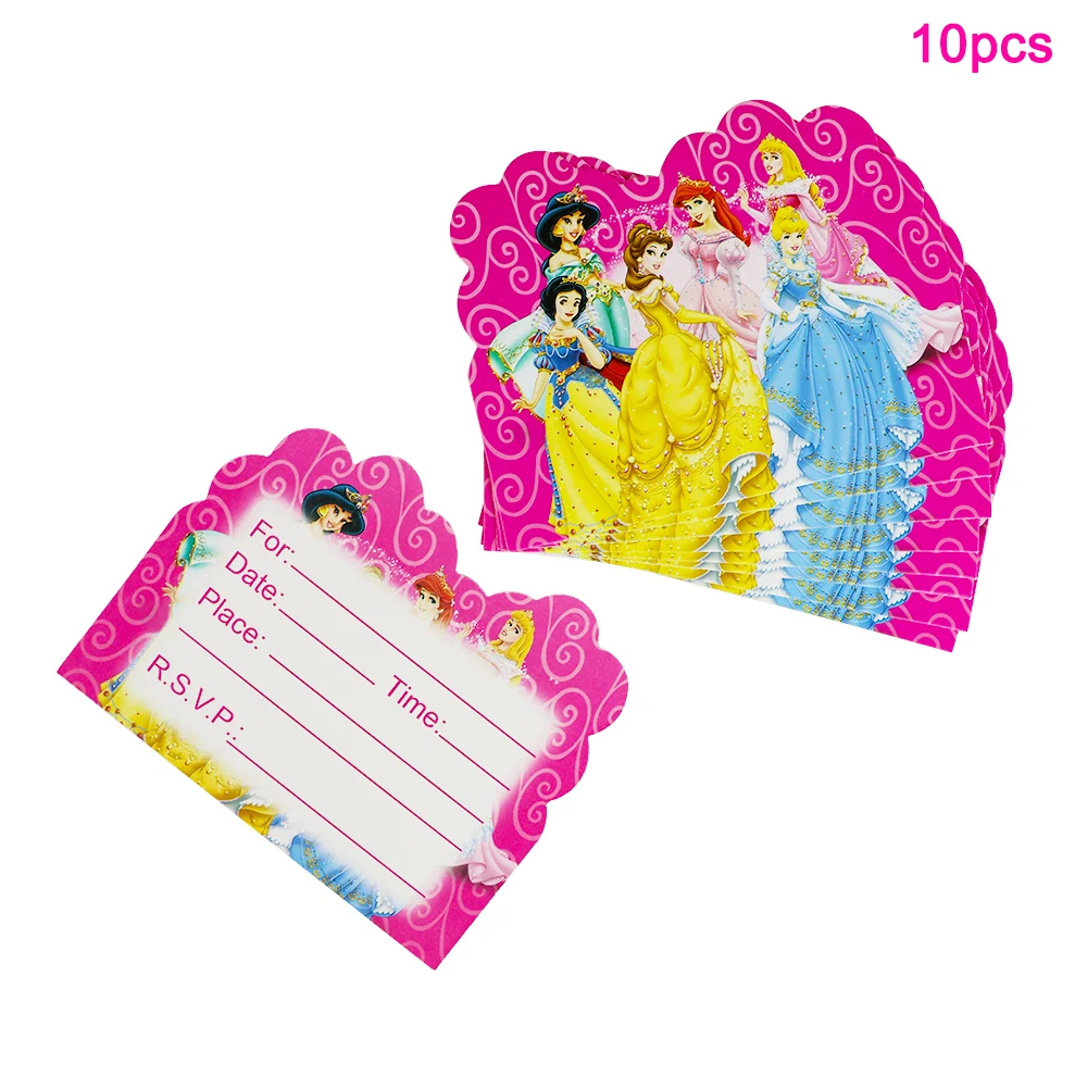 10 шт. розовых пригласительных открыток на тему Шесть принцесс Диснея, украшение для детского дня рождения, товары для вечеринки Baby Shower, сувениры вечерние ринки