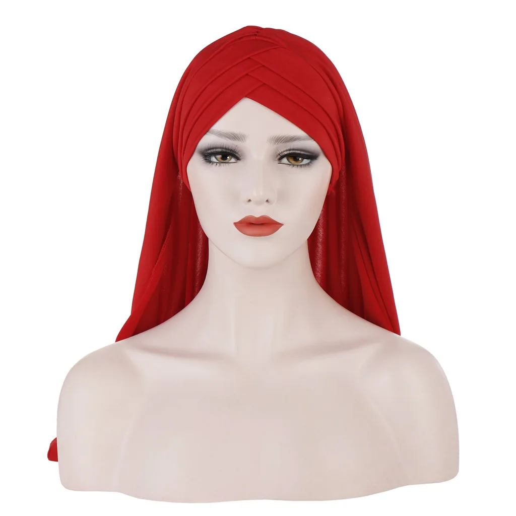 Однотонный хлопковый шарф, хиджаб для мусульманских женщин, эластич...