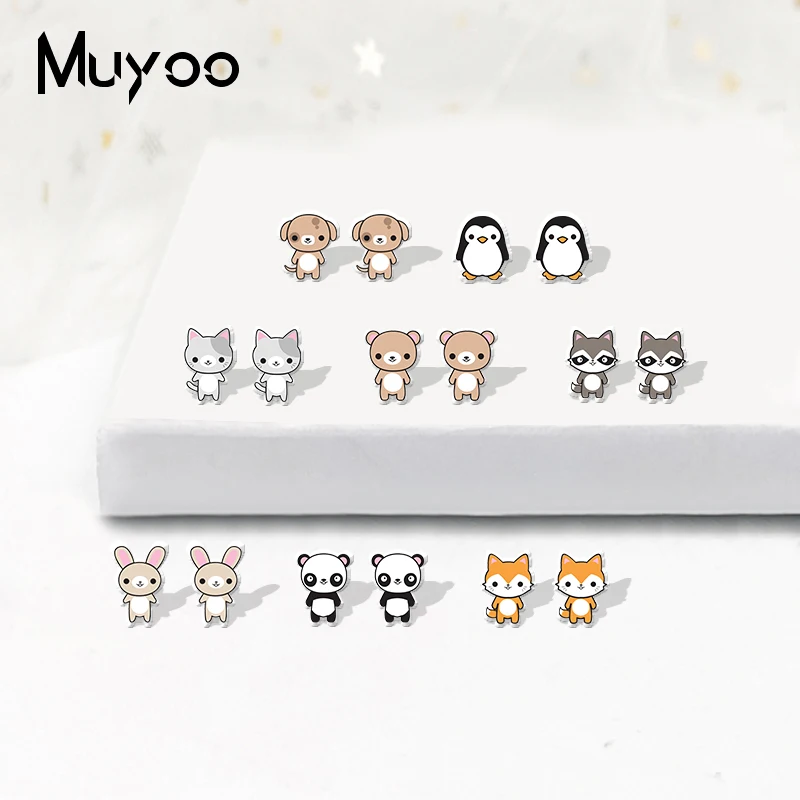 Милые милые акриловые серьги в мультяшном стиле с животными, лисой, пингвином, собакой, ювелирные изделия, серьги из смолы, подарки для детей