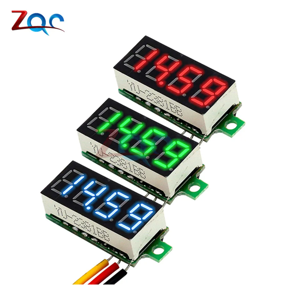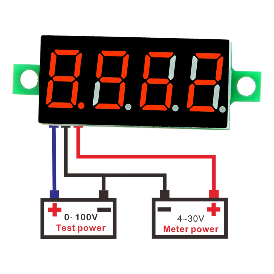 Цифровой мини-вольтметр, 4 бит, 0,36 дюйма, 0-100 в, Вольтметр постоянного тока, тестер электрического напряжения со светодиодной панелью, 3 провода, 12 В, 24 В, 48 В