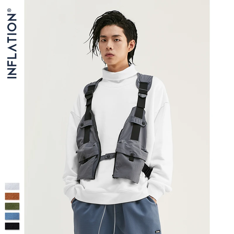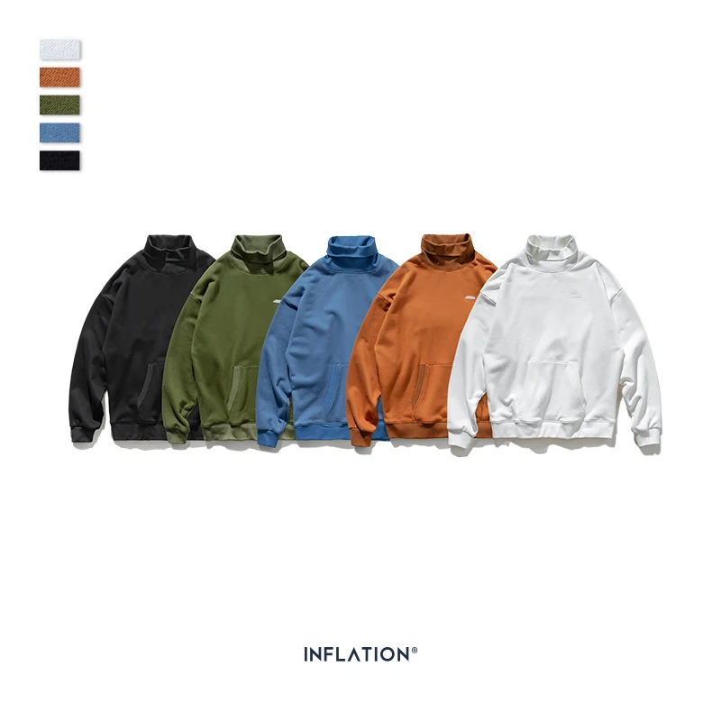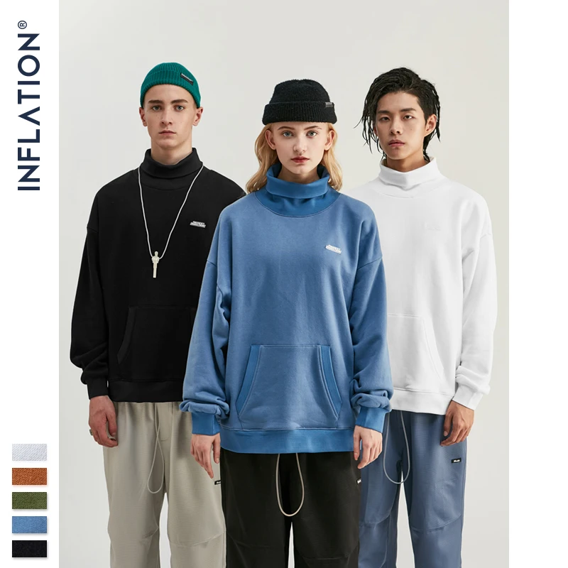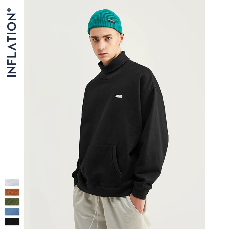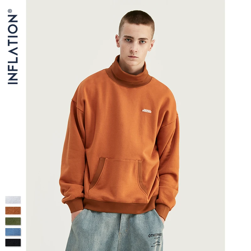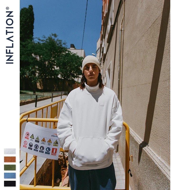 INFLATION Basic мужская толстовка с высоким воротником, однотонная мужская толстовка с карманом-карманом, свободная Мужская Осенняя Толстовка 9620W