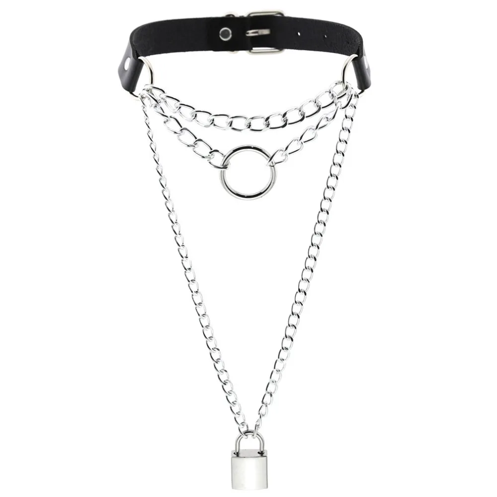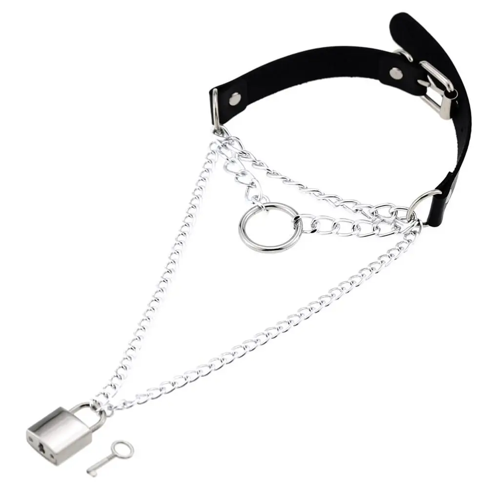 Женский чокер с цепями KMVEXO, кожаный чокер с цепями и замком