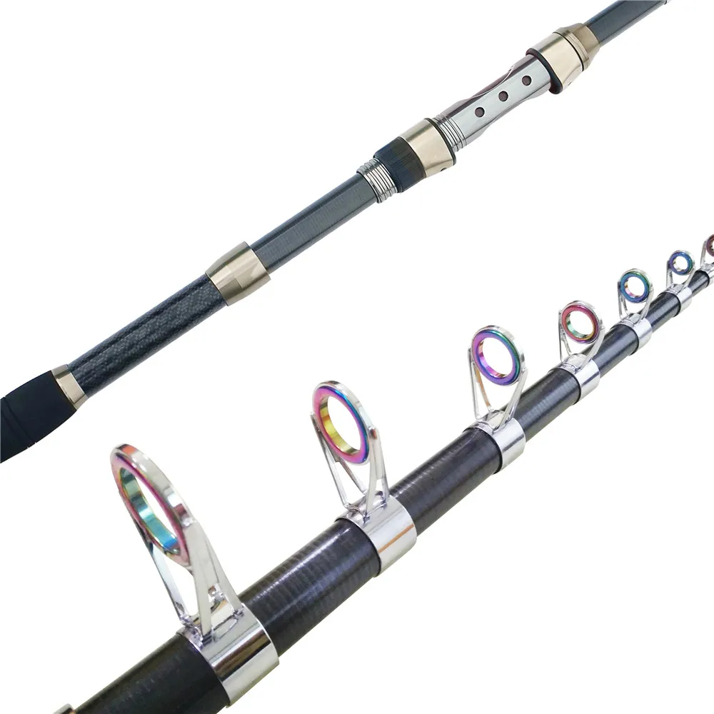 Длина: 2,1 м, 2,4 м, 2,7 м, 3,0 м, 3,6 м Материал: углеродная проволока Модель: телескопическая спиннинговая катушка Особенности: 1. Идеальная эластичность Углеродное волокно высокой плотности, смешанное со стекловолокном, делает вашу удочку жесткой и прочной 2. Анти-морская вода Сиденья с капюшоном из нержавеющей стали 3. Сверхлегкий и портативный Конструкция с длинной крышкой удобна для переноски, легко помещается в багажник автомобиля, люк на лодке или рюкзак 4. Различная длина Доступна для Пресноводной ловли окуня, форели, морской рыбалки или рыбалки на суше