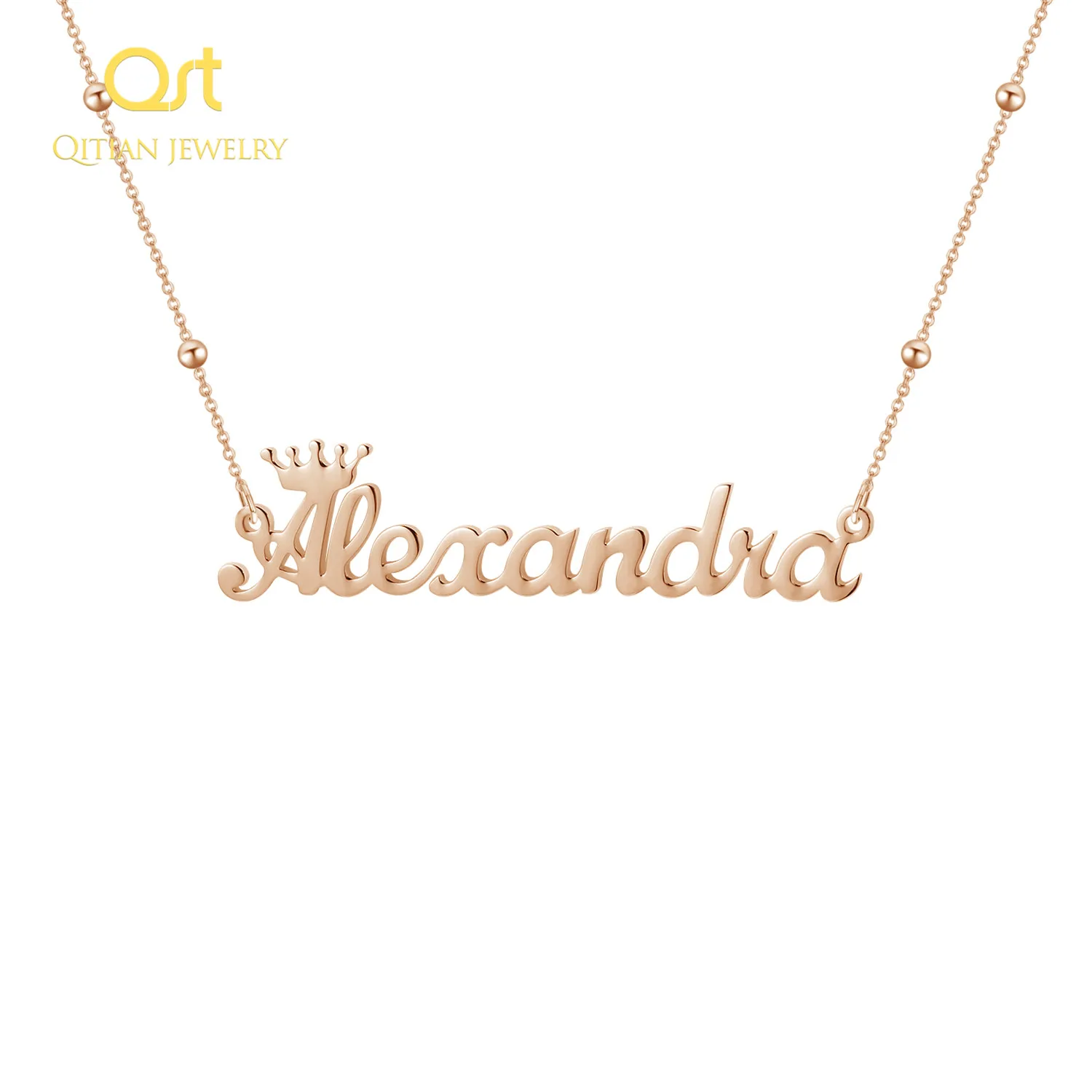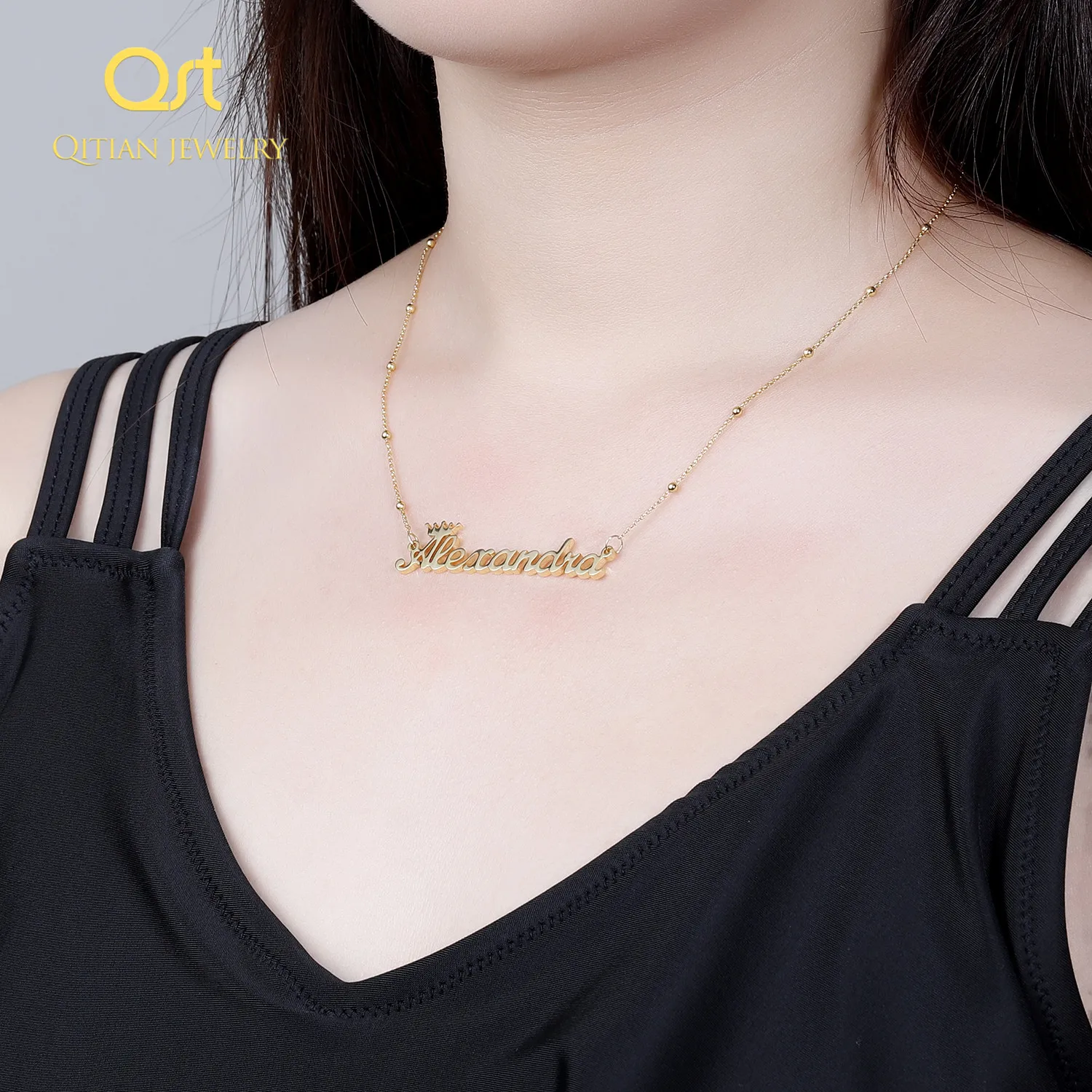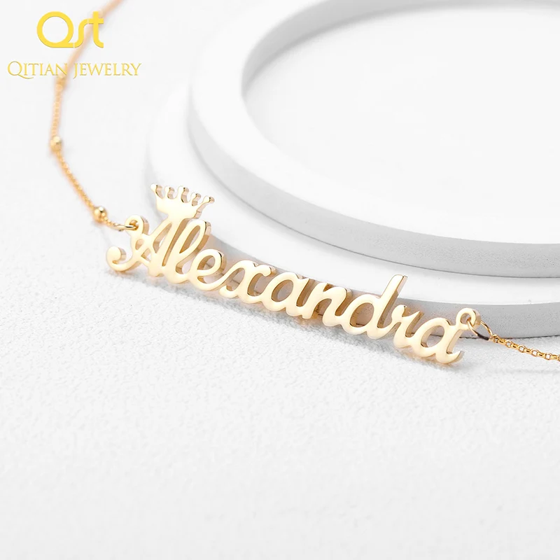 Персонализированное имя корона ожерелье ручной работы на заказ курсивный кулон-табличка с именем из нержавеющей стали бусы цепи ювелирные изделия для женщин