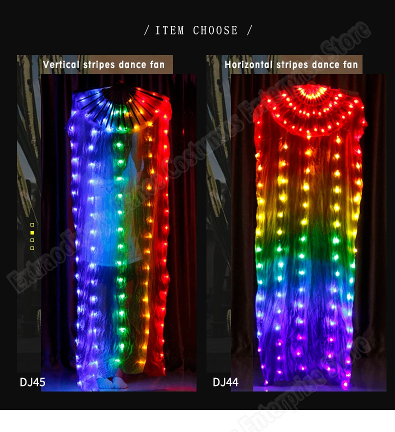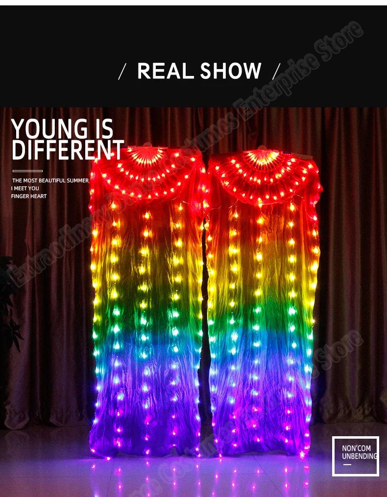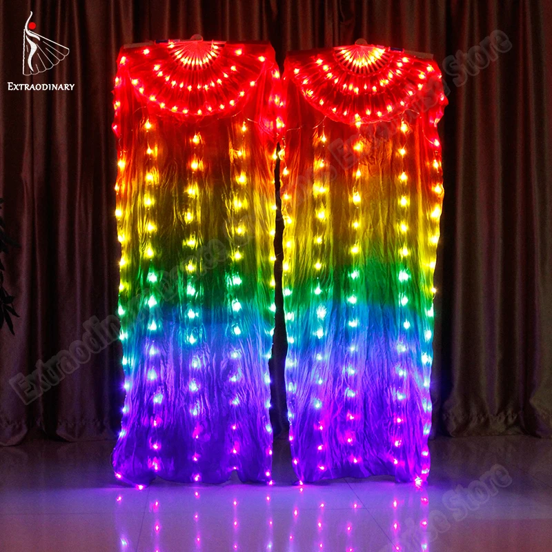 Веер-вуаль для танца живота, шелковая, со светодиодсветильник кой