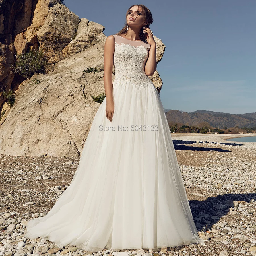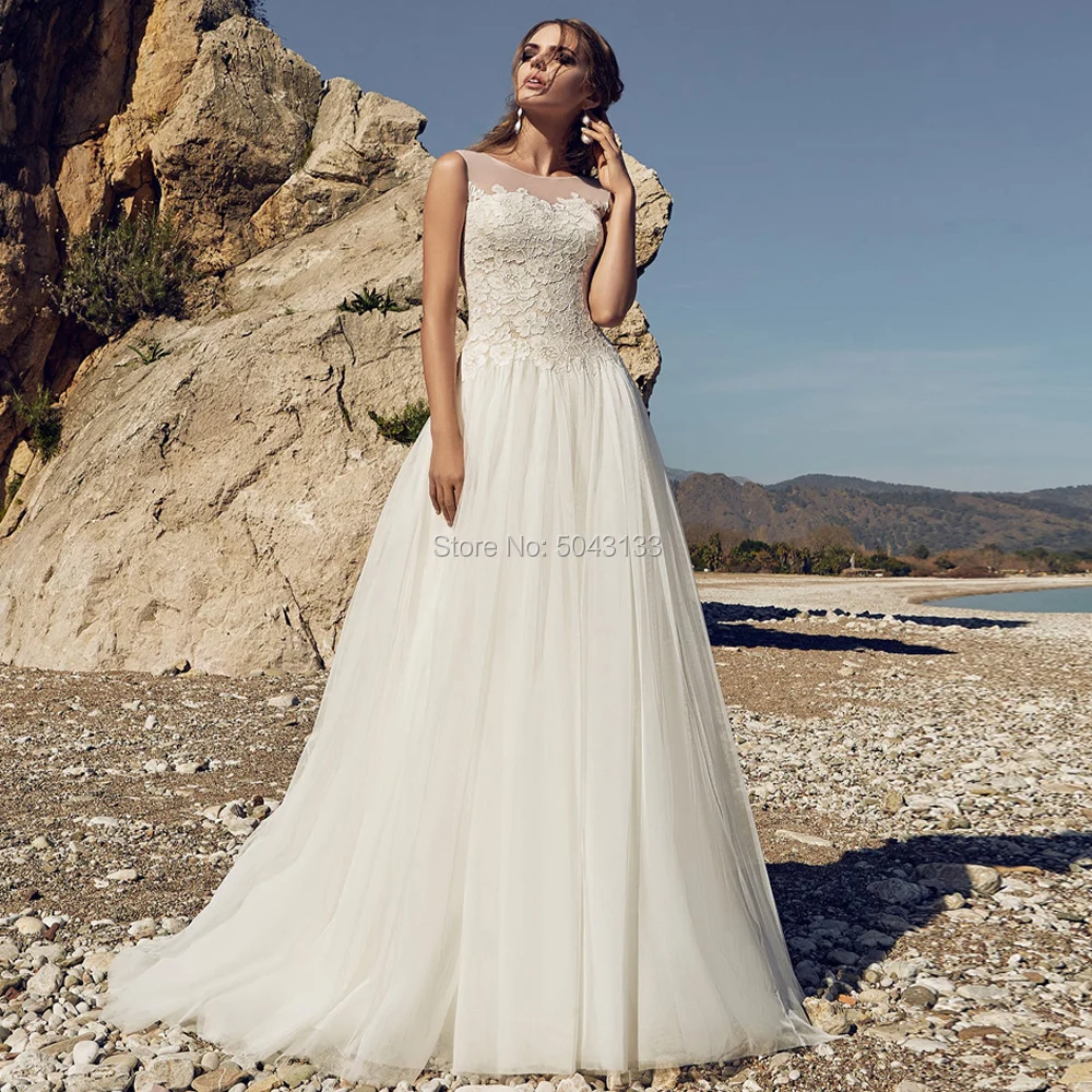 Женское свадебное платье без рукавов, с открытой спиной и прозрачным вырезом