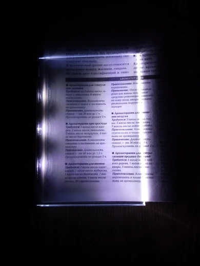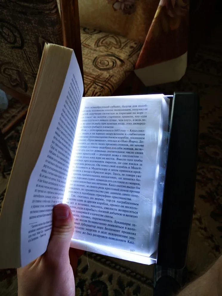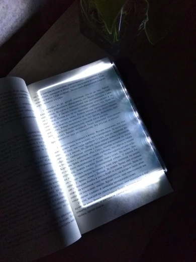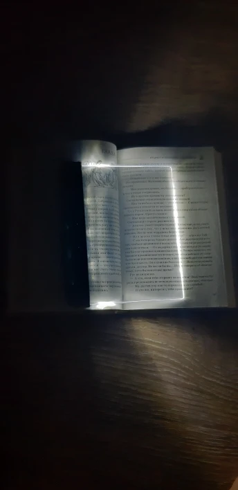 Хороший свет для чтения книг. Свет остается на поверхности книги в темной комнате, не мешая другим людям. Также пригодится как Закладка и небольшая поверхность для письма.