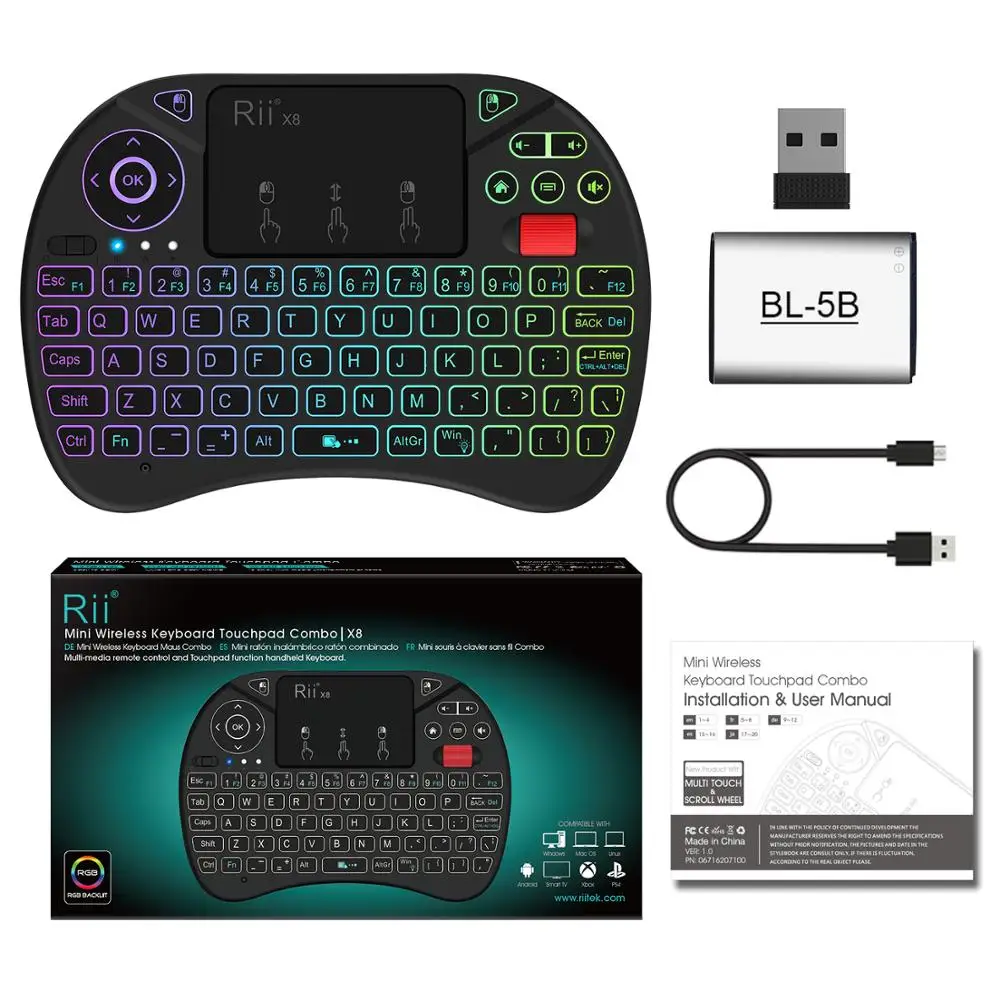 Номер модели : X8 Название продукта: Беспроводная мини-клавиатура 2,4G, тачпад Combo Бренд: Rii