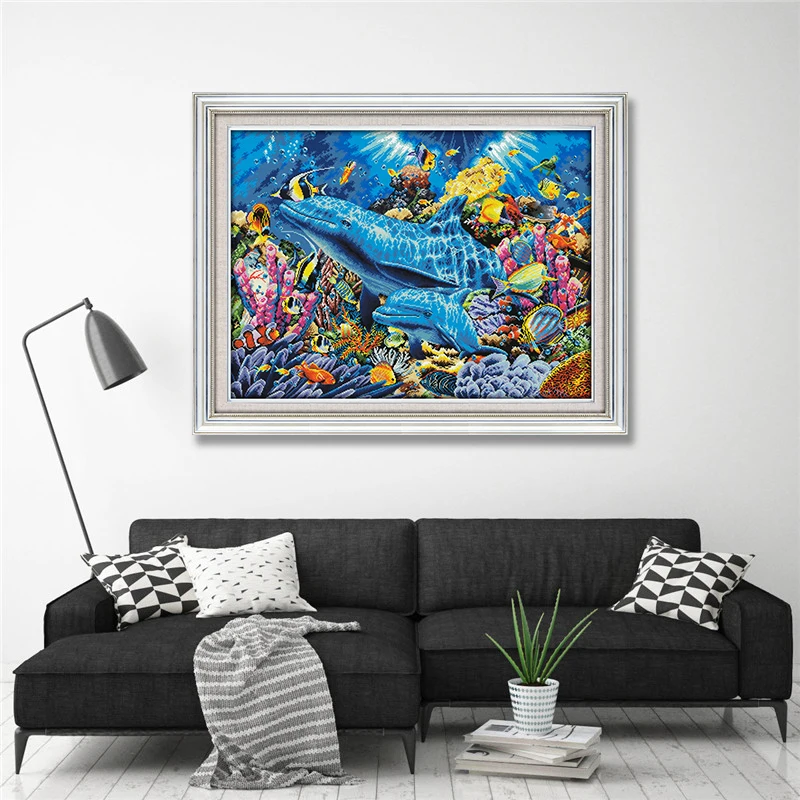 Дельфин в море узоры Счетный набор вышивки крестиком продажа DMC хлопок нить вышивка набор сделай сам ручной работы украшения дома ремесла