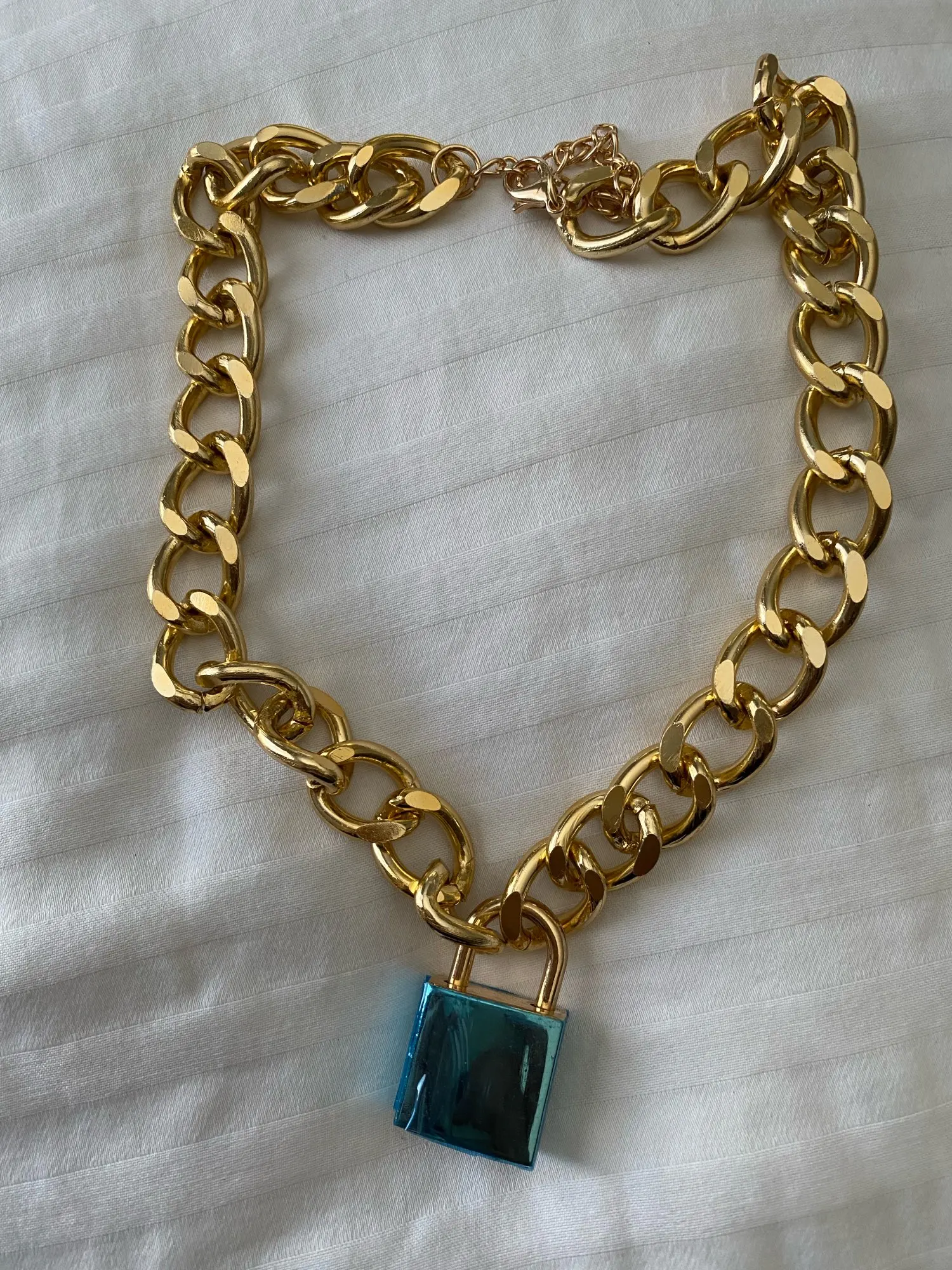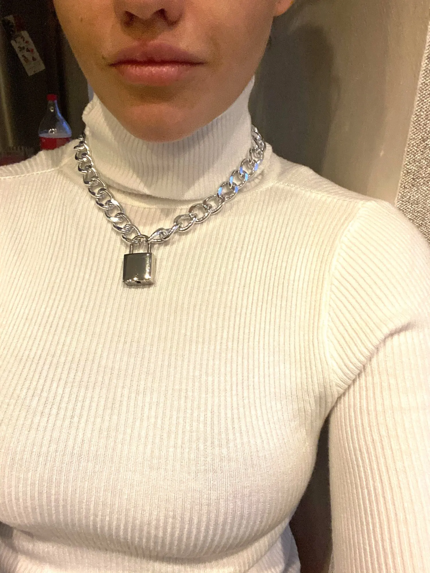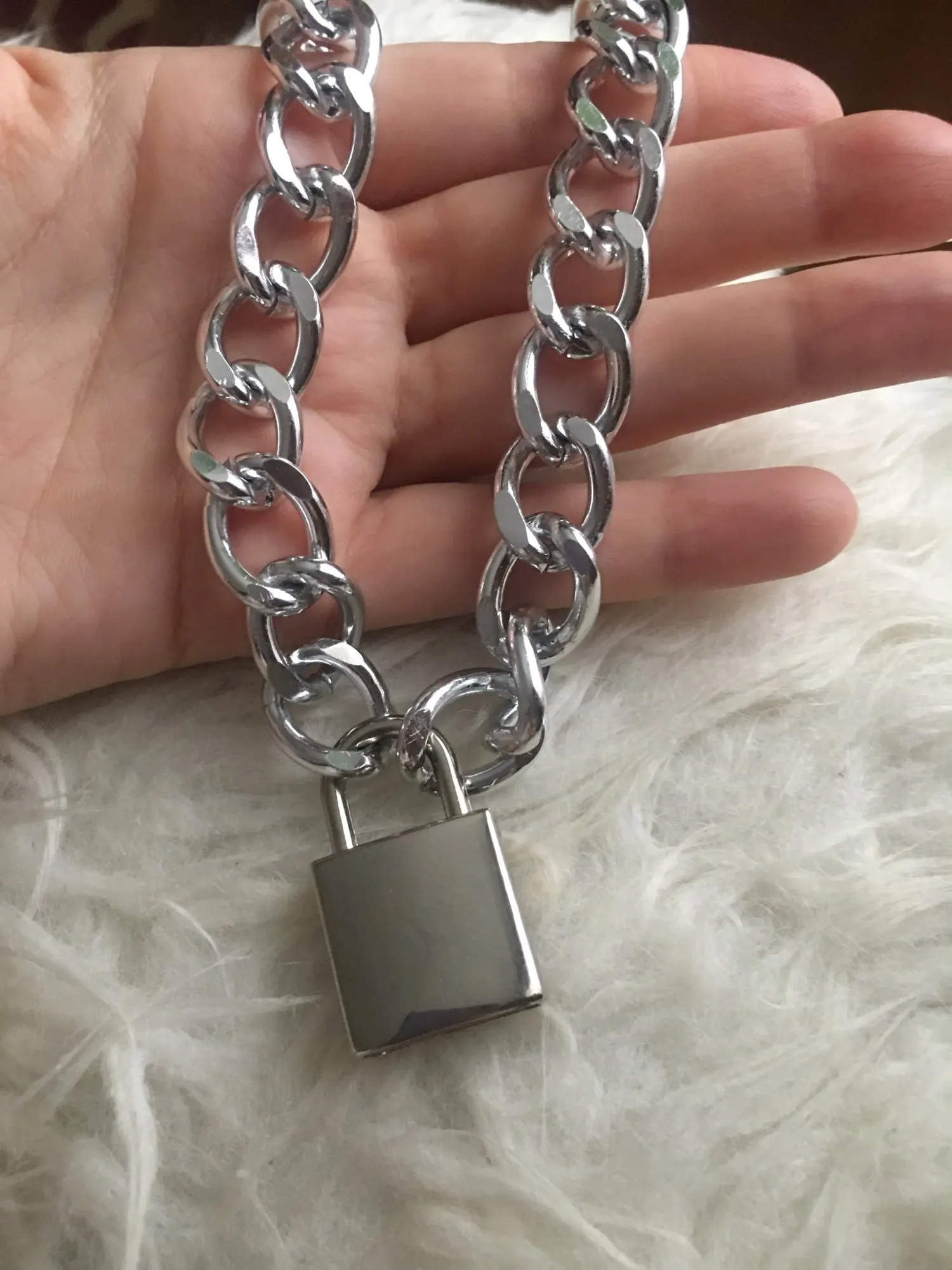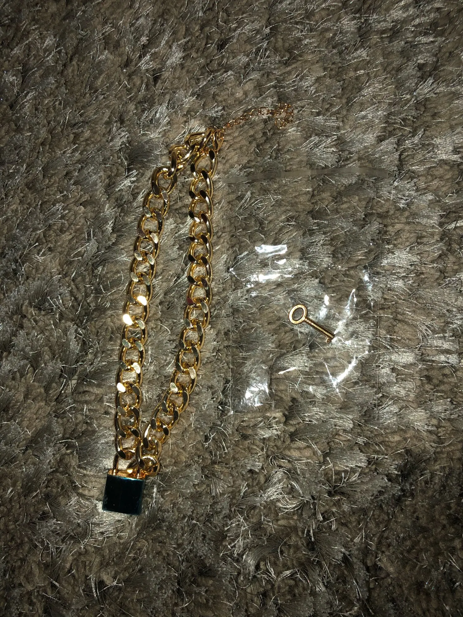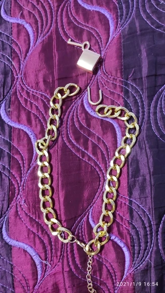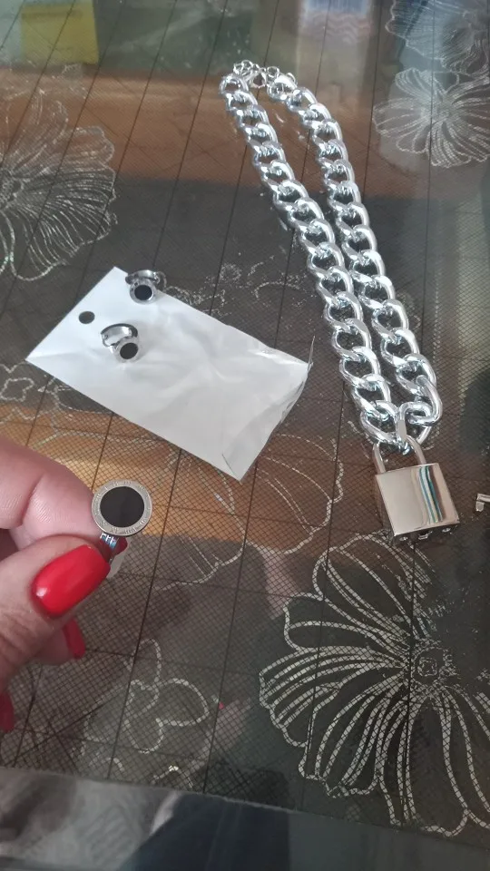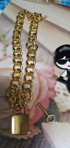 Получила ожерелье. Довольно легкое, как будто алюминий или пластик... Замок тяжеленький, видимо из металла. Смотрится очень стильно! К замку идет ключ, который открывает замок, но зачем не знаю... Посылка пришла раньше заявленного срока. Трек отслеживался. Рекомендую! На фото: с замка не снята защитная пленка, поэтому он синий )))