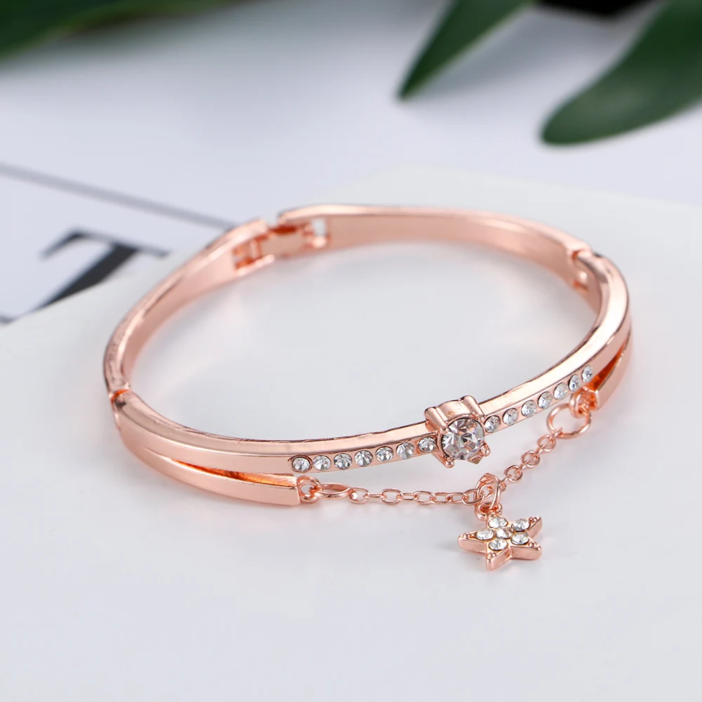 Женский браслет из нержавеющей стали под розовое золото, с подвеско...