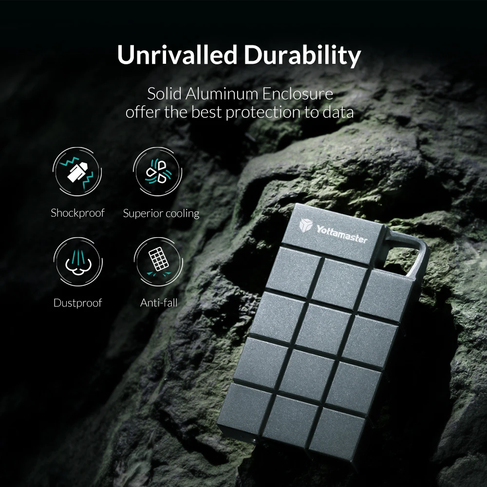 Портативный внешний SSD Yottamaster с алюминиевым дизайном, отличная теплоотдача. И прочная конструкция unibody из алюминия обеспечивает дополнительную защиту, обеспечивая лучшую ударопрочность, защиту от пыли и падения. Современный и уникальный дизайн магического Куба подчеркивает персонализацию; Поверхностные спреи анодируют, что делает его удобным на ощупь.