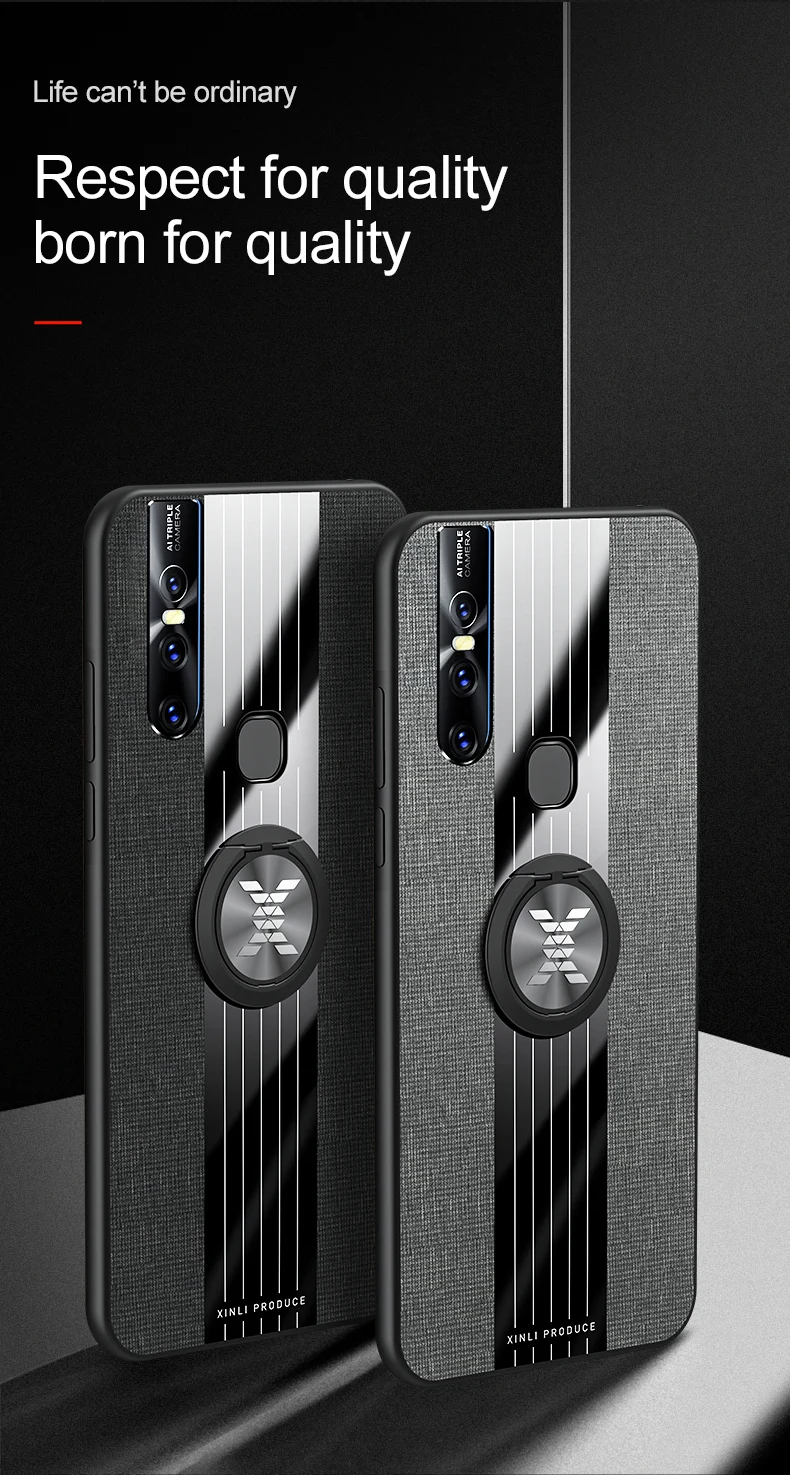 Чехол для VIVO V15 Pro, роскошная жесткая ткань с кольцом и подставкой, тонкий защитный чехол для vivo v15 v15pro, чехол для телефона