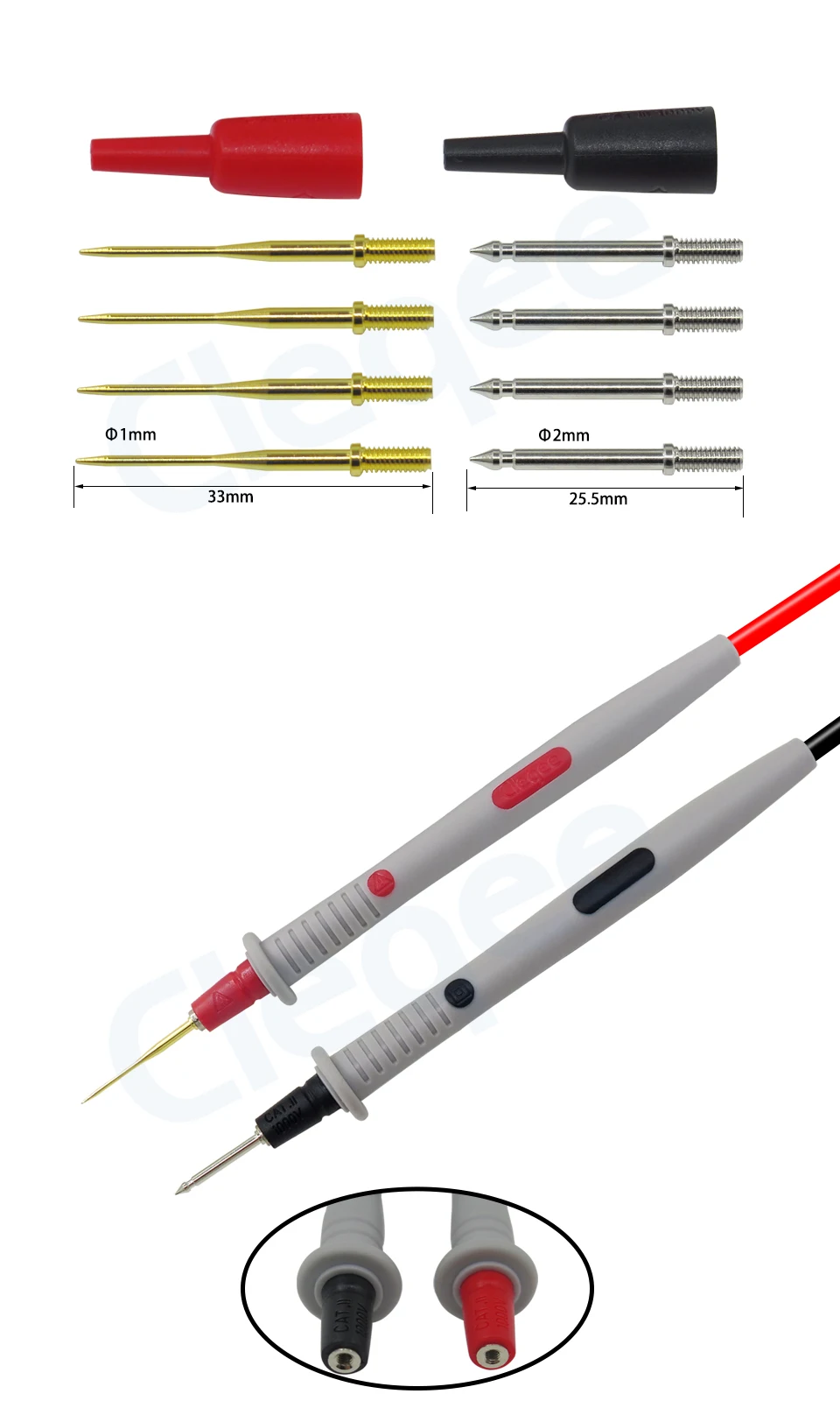 Cleqee P8003.1 8 шт. Сменные тестовые иглы комплект 1 мм позолоченный острый и 2 мм Стандартный подходит для мультиметра зонд