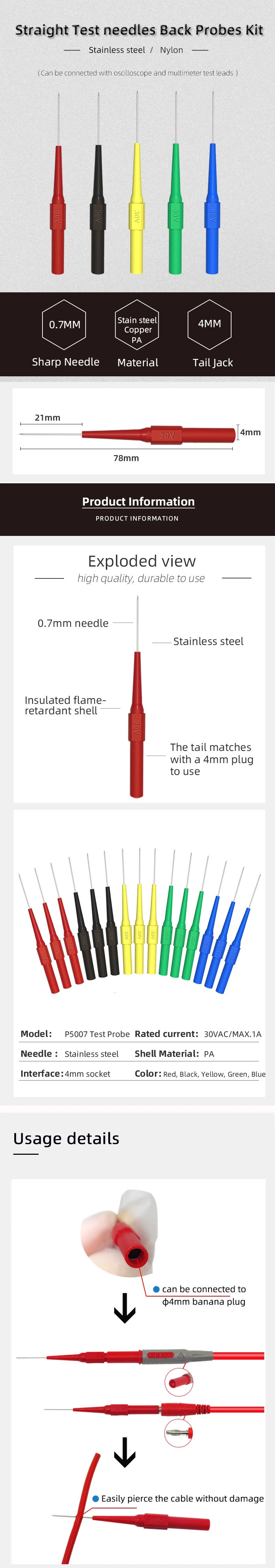 Тестовый зонд Cleqee P5007 для мультиметра, изоляция, иглы для прокалывания, разъем 4 мм, набор инструментов для иглоукалывания автомобиля, 30 в