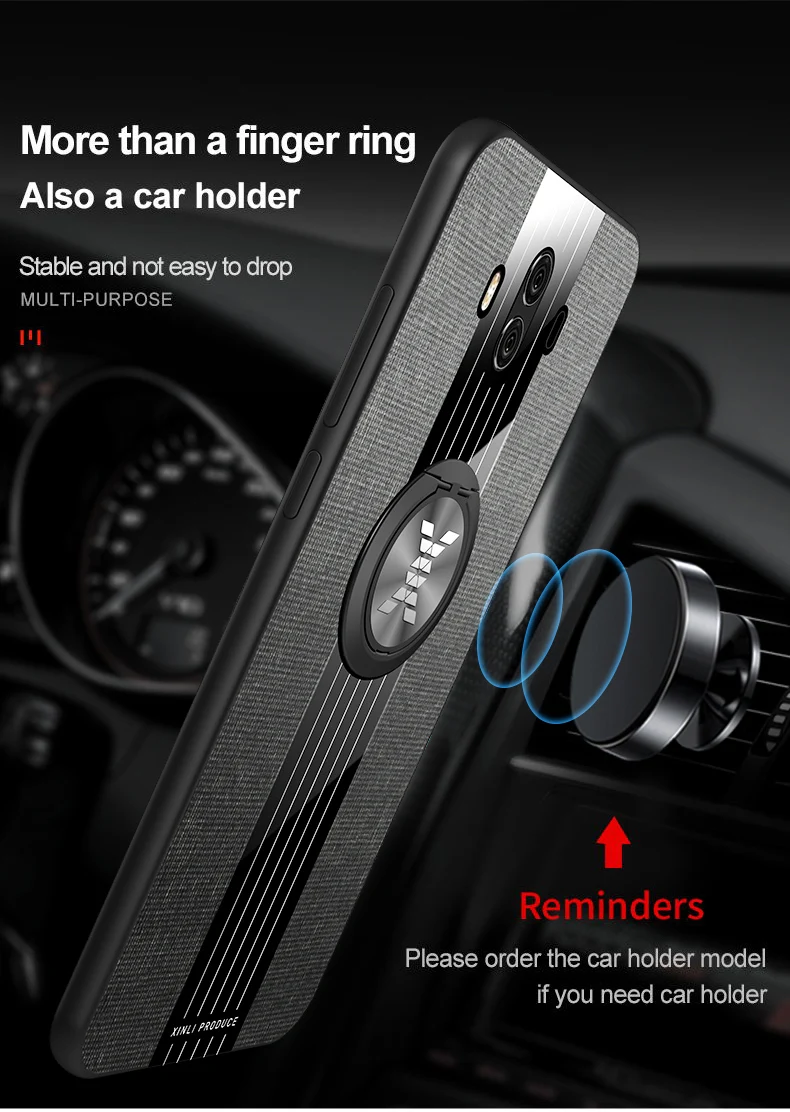 Чехол для Huawei Mate 10 Pro, роскошная жесткая ткань с кольцом и подставкой, тонкий защитный чехол для Huawei mate 10 9 8 mate9