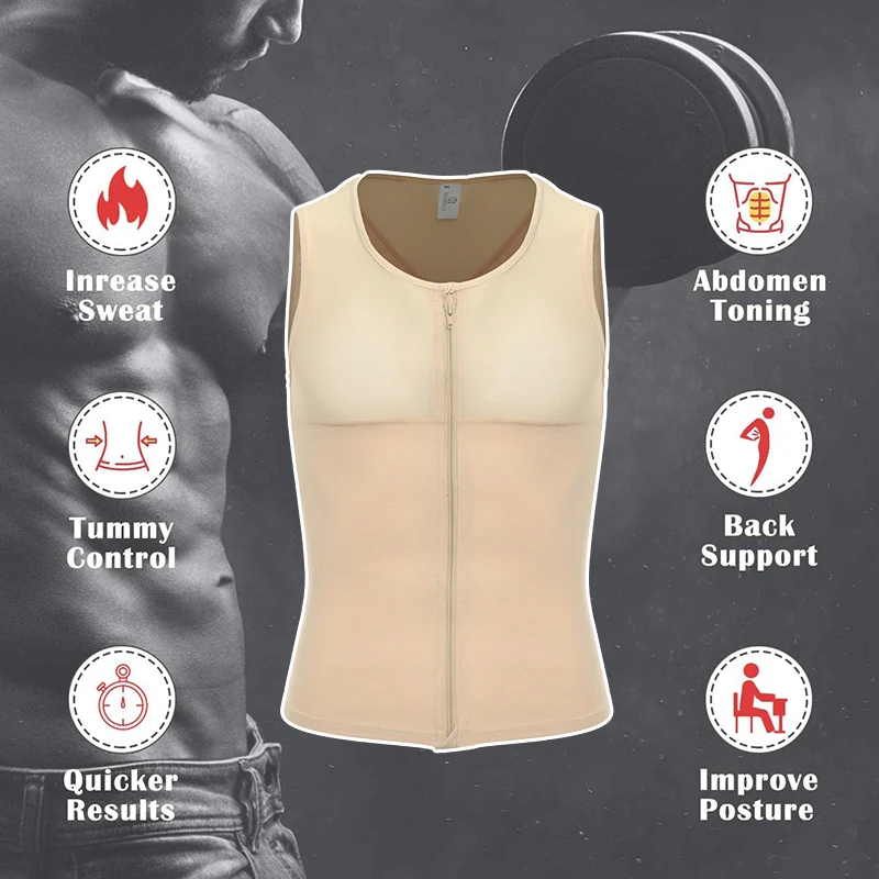 Застежка-молнияМгновенное сжатие молнии в области груди при ГИНЕКОМАСТИИ: обеспечивает мгновенное похудение груди и тела. Не теряет своей упругости компрессии. Наша мужская майка с поясом предназначена для стройного тела под любой тип одеждыМолния легкая конструкция: плечевой сетчатый материал позволяет легко брать и снимать, в отличие от других аналогичных компрессионных рубашек для похудения и коррекции груди для мужчин, наши изготовлены из спандекса высочайшего качестваСкрытый & Стройный корсет: бесшовный удобно впишется в Любимые футболки, свитера или скроенные деловые костюмы. Оригинальная облегающая компрессионная майка, специально разработанная для мужчин, чтобы носить незаметно под любой тип рубашкиСветильник Кая майка: дышащий и мягкий к коже материал скрывает гинекомастию под любым типом одежды. Отлично подойдет для спортивной активности, так как позволяет коже дышать. Оригинальная компрессионная рубашка для похудения и коррекции фигуры, разработанная специально для мужчин