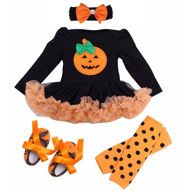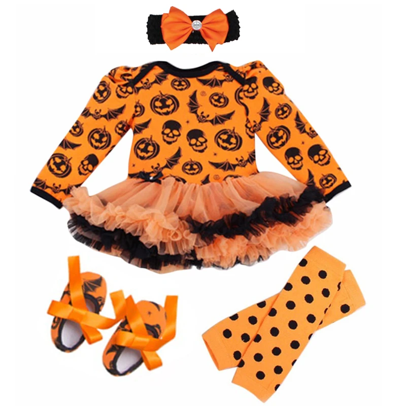 Одежда на Хэллоуин для новорожденных, комплект одежды для маленьких девочек, наряды на первый Хэллоуин с тыквой, черепом, смешные праздничные костюмы-пачки, рождественские подарки