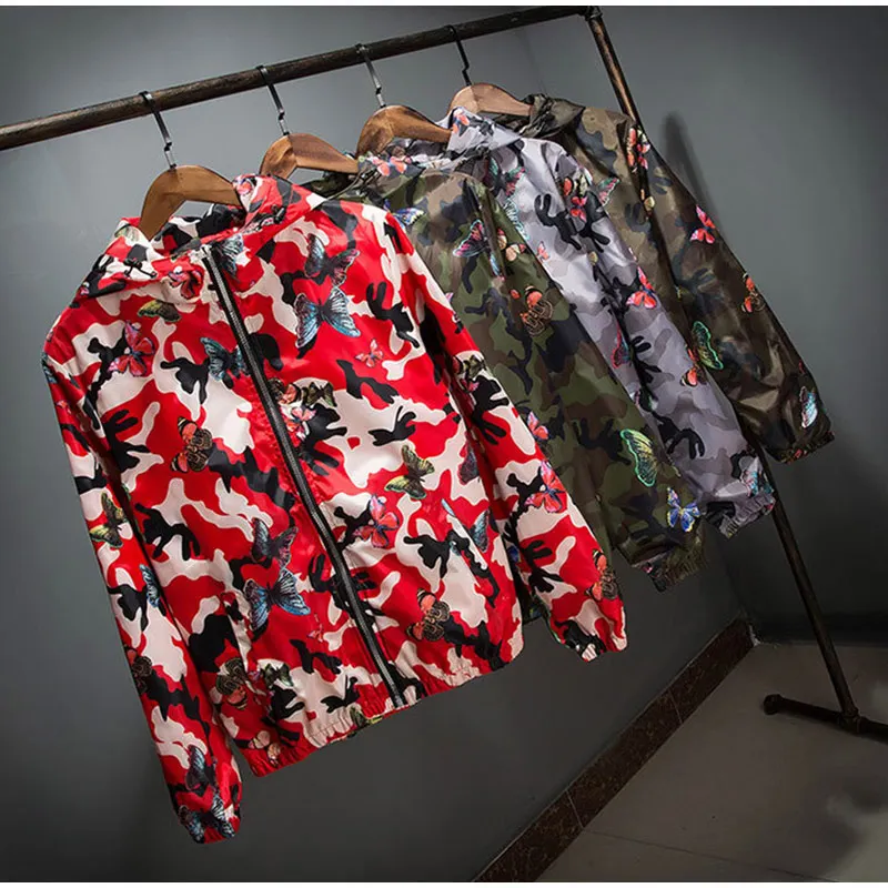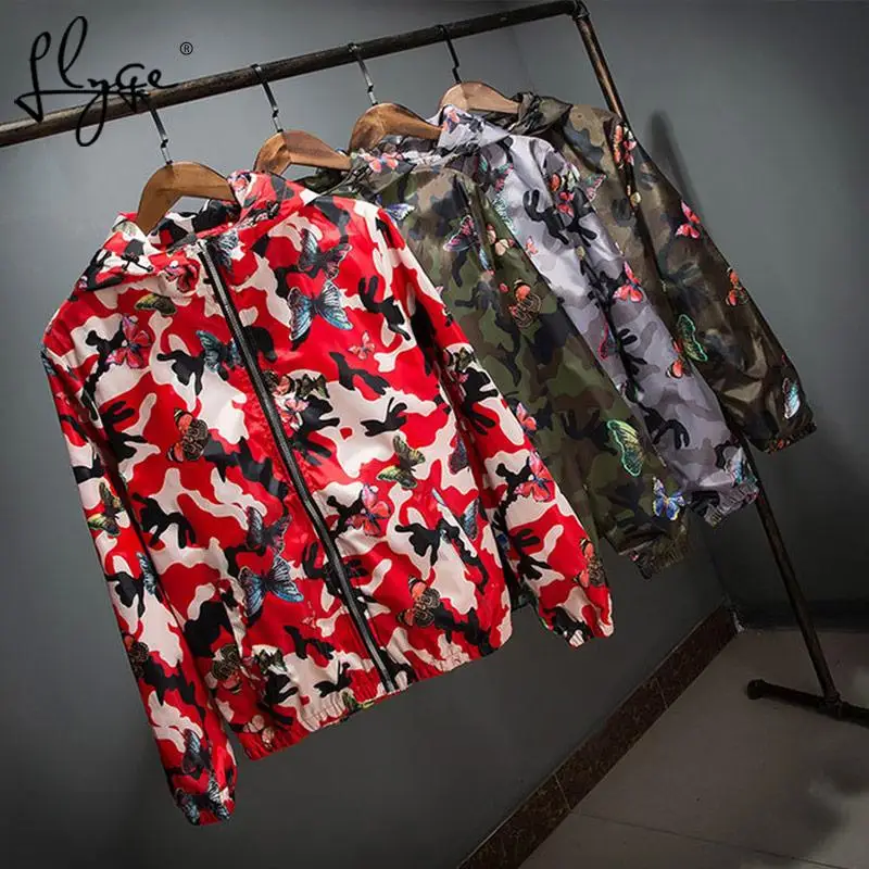 Женские пальто, куртка, камуфляжная, с принтом бабочки, на молнии, ветровка, тонкое женское пальто, для леди, 2020, весна, осень, модные топы с капюшоном