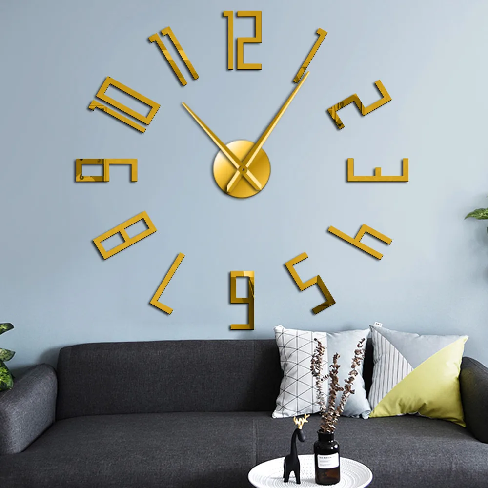 Большие зеркальные цифры, современные большие настенные часы сделай сам, бесшумные, не тикающие, современные декоративные настенные часы для гостиной