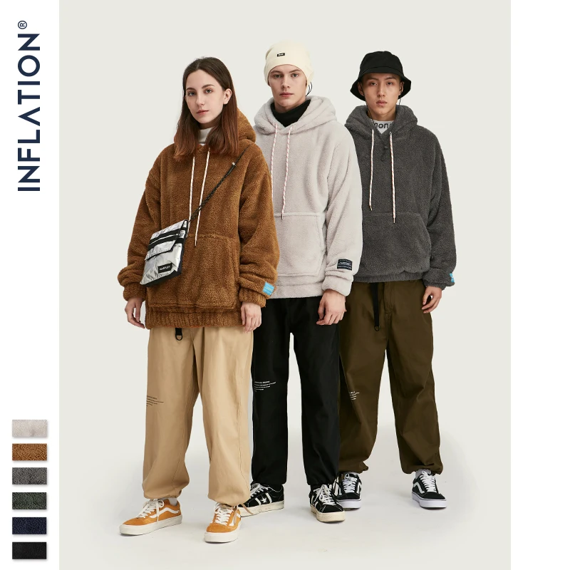 Толстовка INFLATION DESIGN большого размера цвета хаки, шерстяной флисовый пуловер, толстовка черного цвета, новейшие тренды, мужские толстовки с капюшоном, бесплатная доставка, 8778 Вт