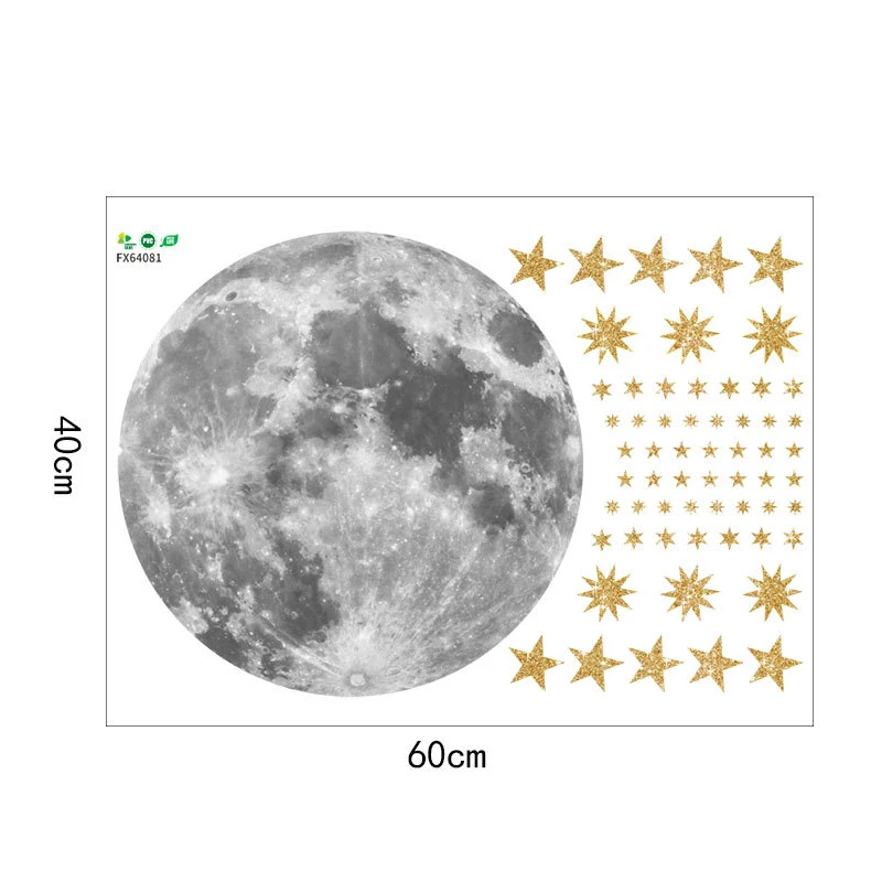 Мультфильм серая луна золотые звезды настенные наклейки для детской комнаты художественный фон украшения на стену детская спальня роспись украшение для дома