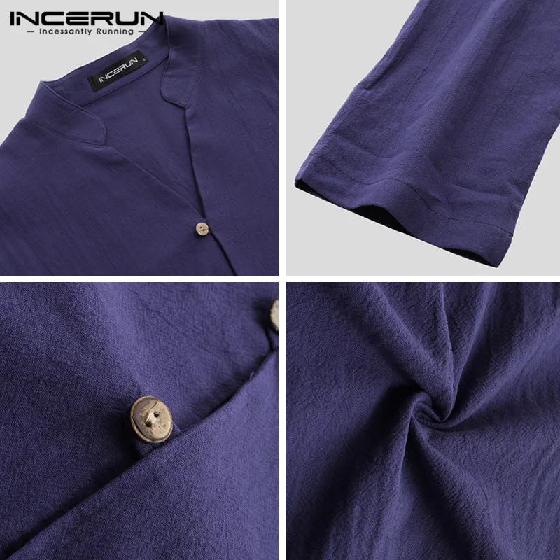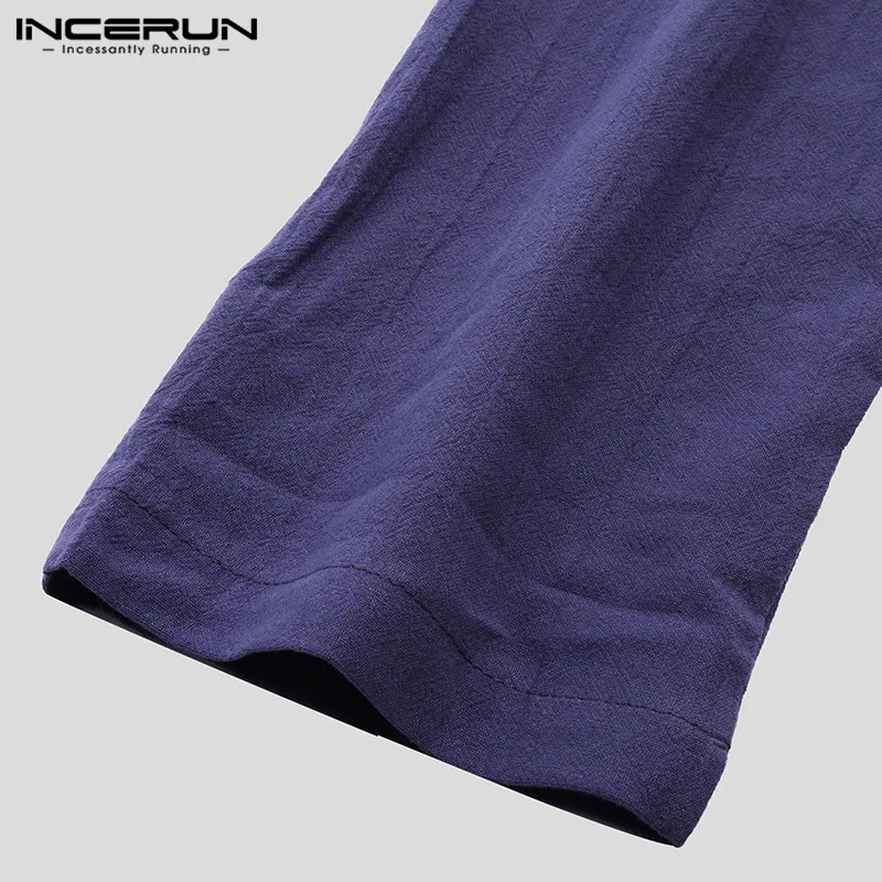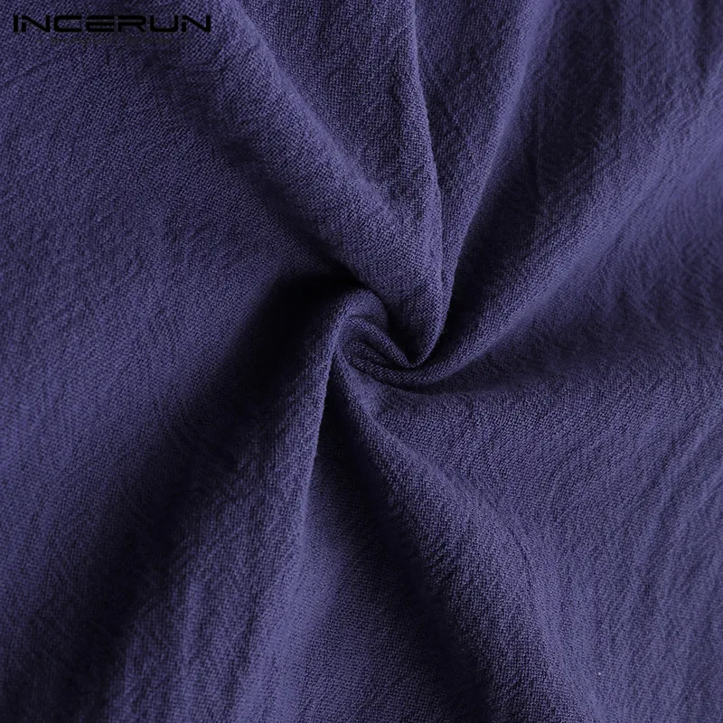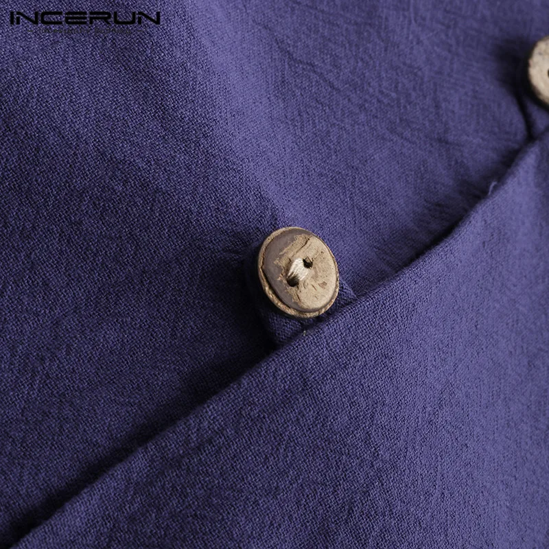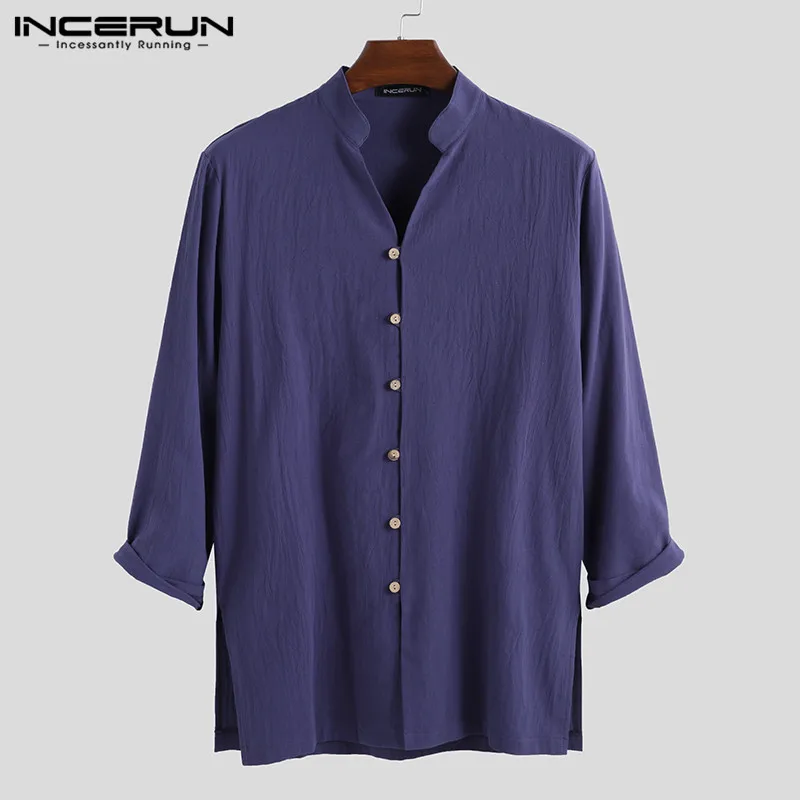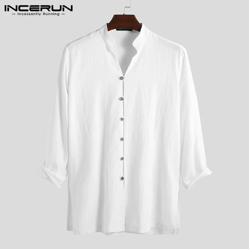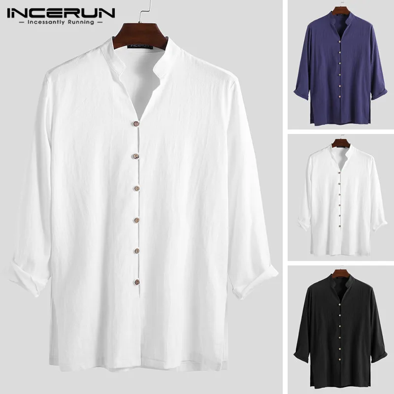 INCERUN мужские рубашки с длинным рукавом в китайском стиле с воротником-стойкой, повседневная однотонная винтажная длинная рубашка Кунг-фу для мужчин 2020 Camisa Masculina S-5XL