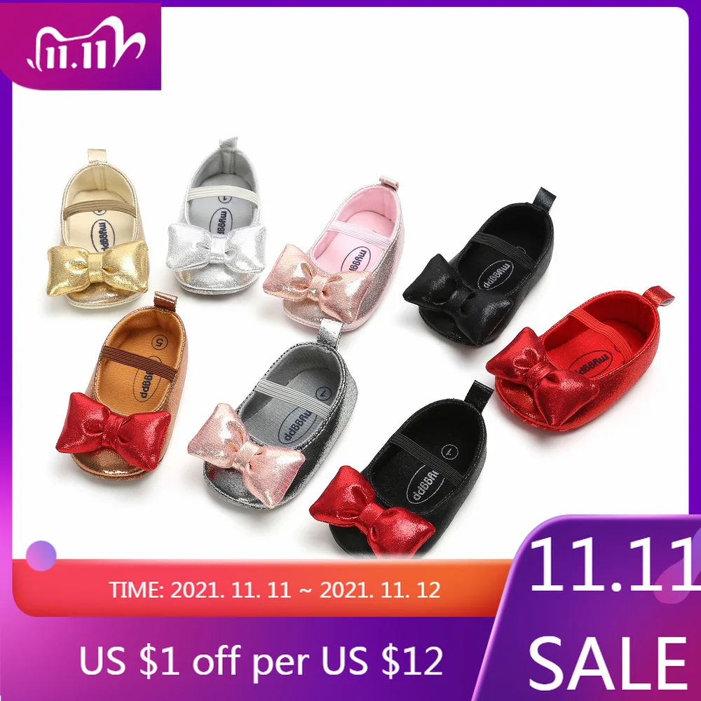 Туфли для новорожденных, мягкая нескользящая подошва, бант, наряд п...