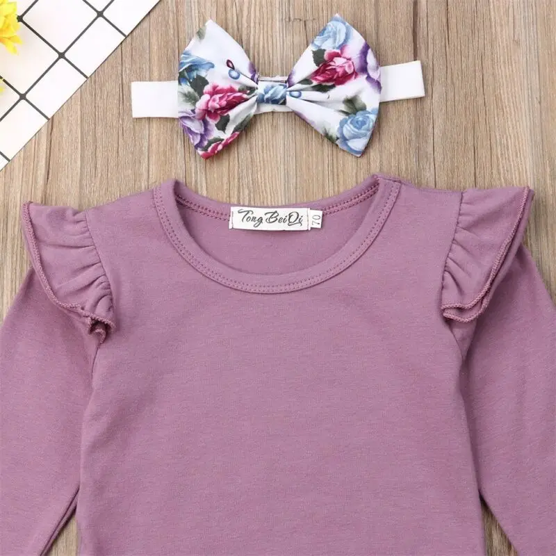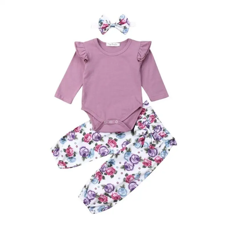 Хлопковый комбинезон для новорожденных девочек, топ + штаны с цветочным принтом, комплект одежды из 3 предметов, Одежда 0-24 мес.