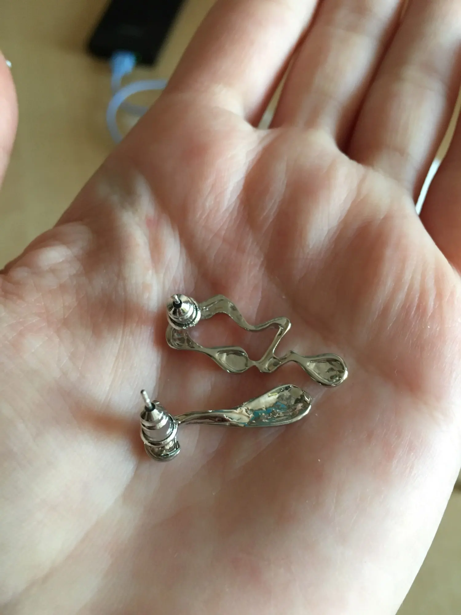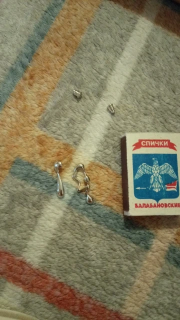 Серёжки красивые, аккуратные, добротные. Выглядят, как серебро. Лёгкие. Гвоздики со стопером от спадания. Доставка быстрая. Рекомендую!!!